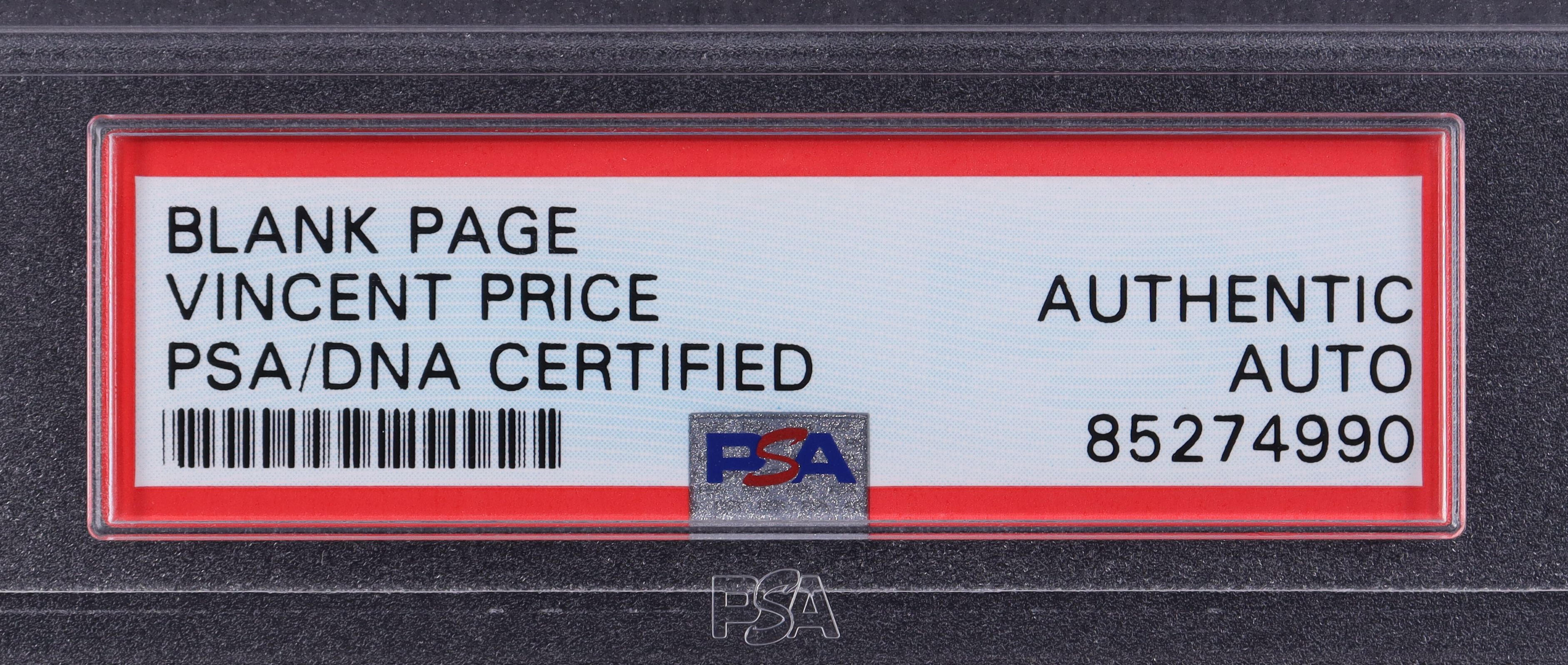 Hand-drawn portrait measures 7.5" x 10" in size and features a sketch that was made by Vincent Price (D. 1993)! Price also included his signature as well as (2) inscriptions!