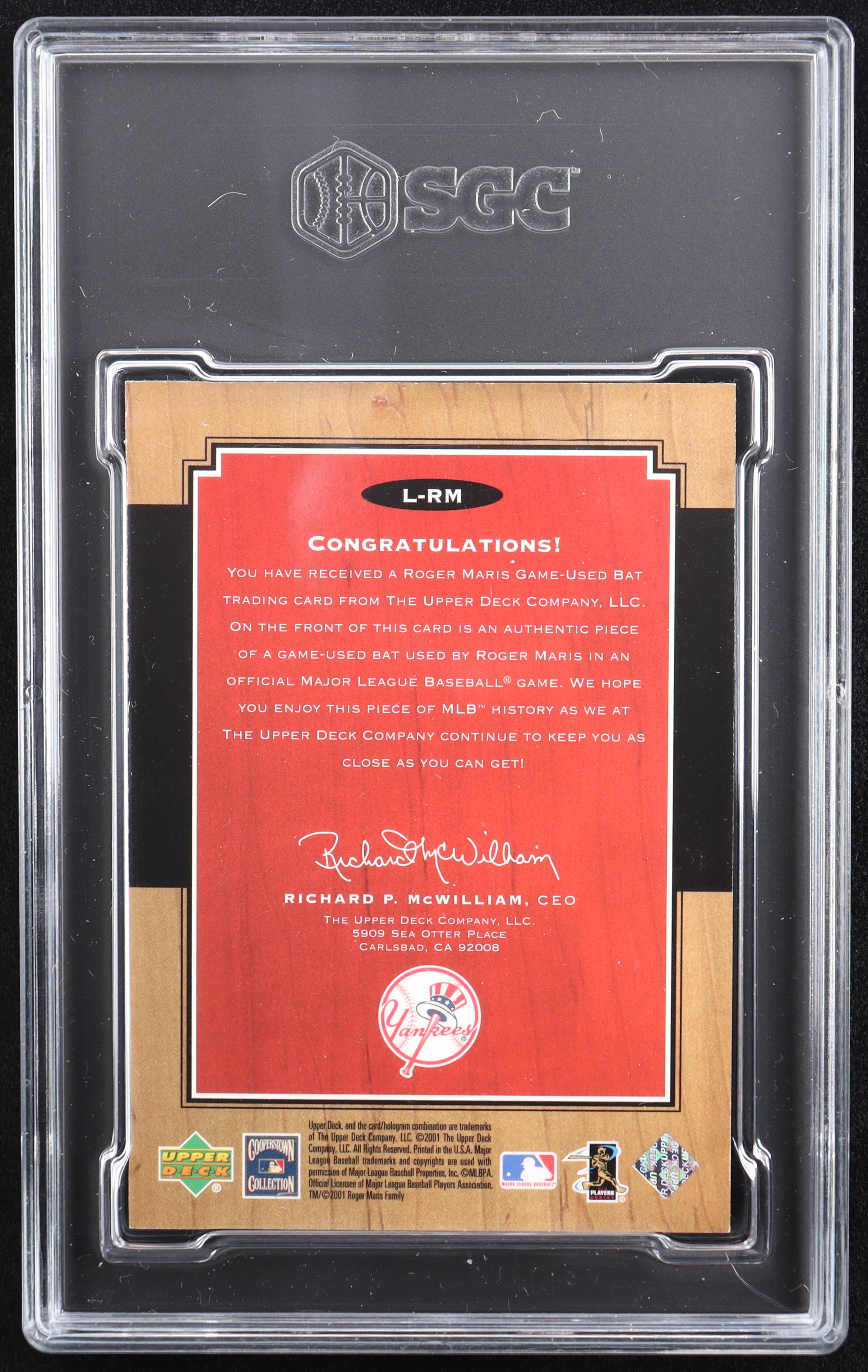 Roger Maris 2001 Upper Deck Legends Legendary Lumber #LRM (SGC 9)