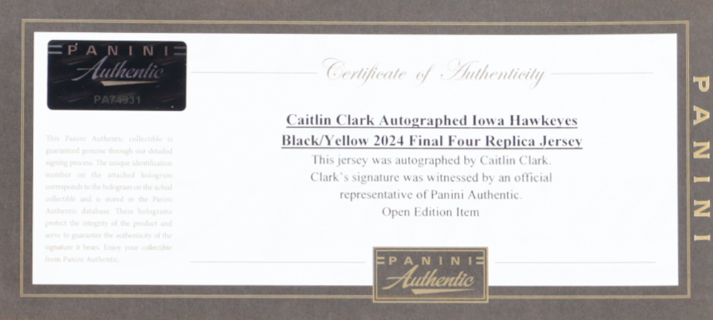 Caitlin Clark Signed Hawkeyes Jersey With 2024 Final Four Patch & Original Panini Box (Panini)