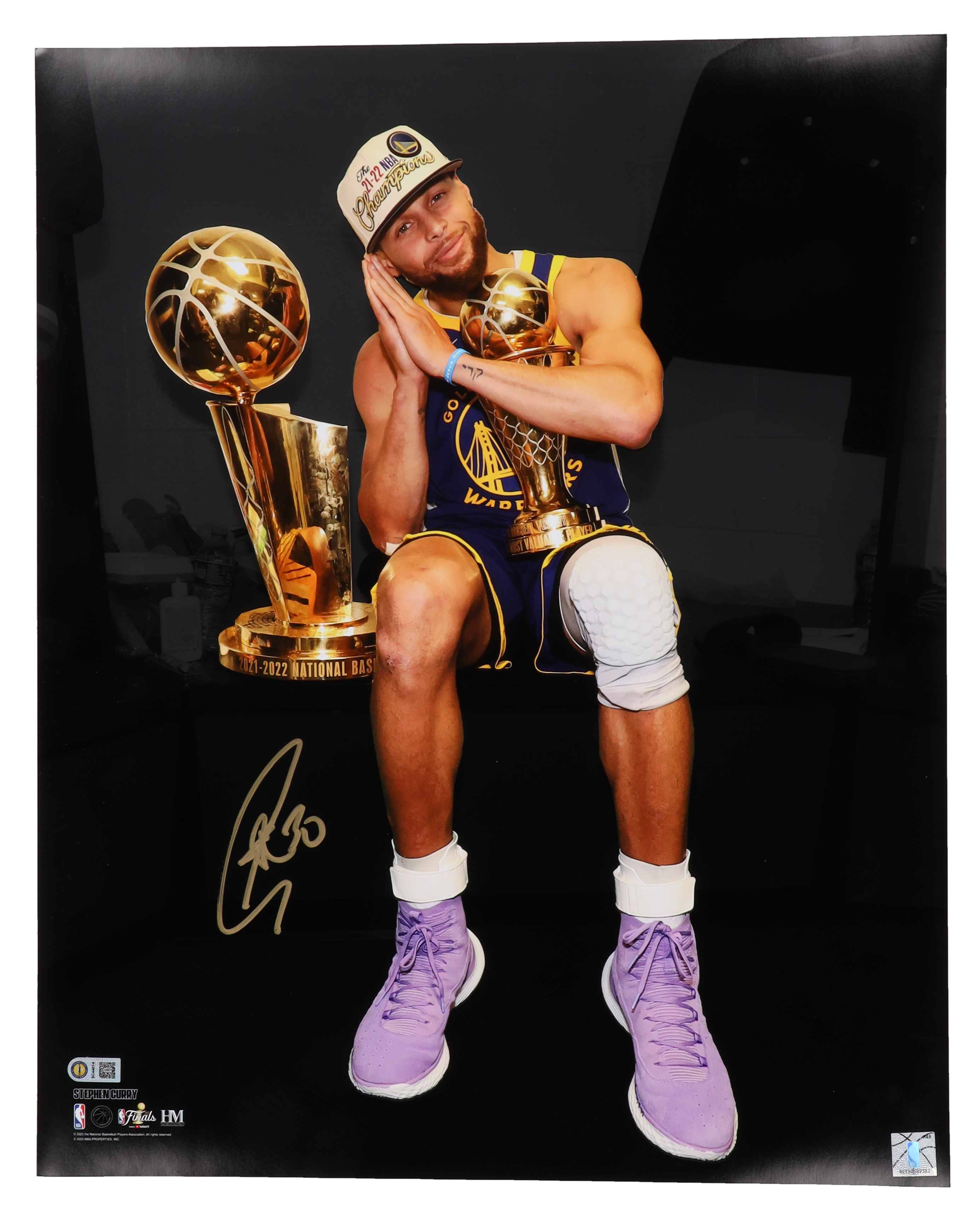 Photo measures 16" x 20" in size and features a photo that has been hand-signed by Stephen Curry (Golden State Warriors).
