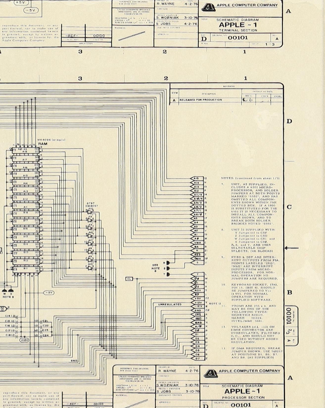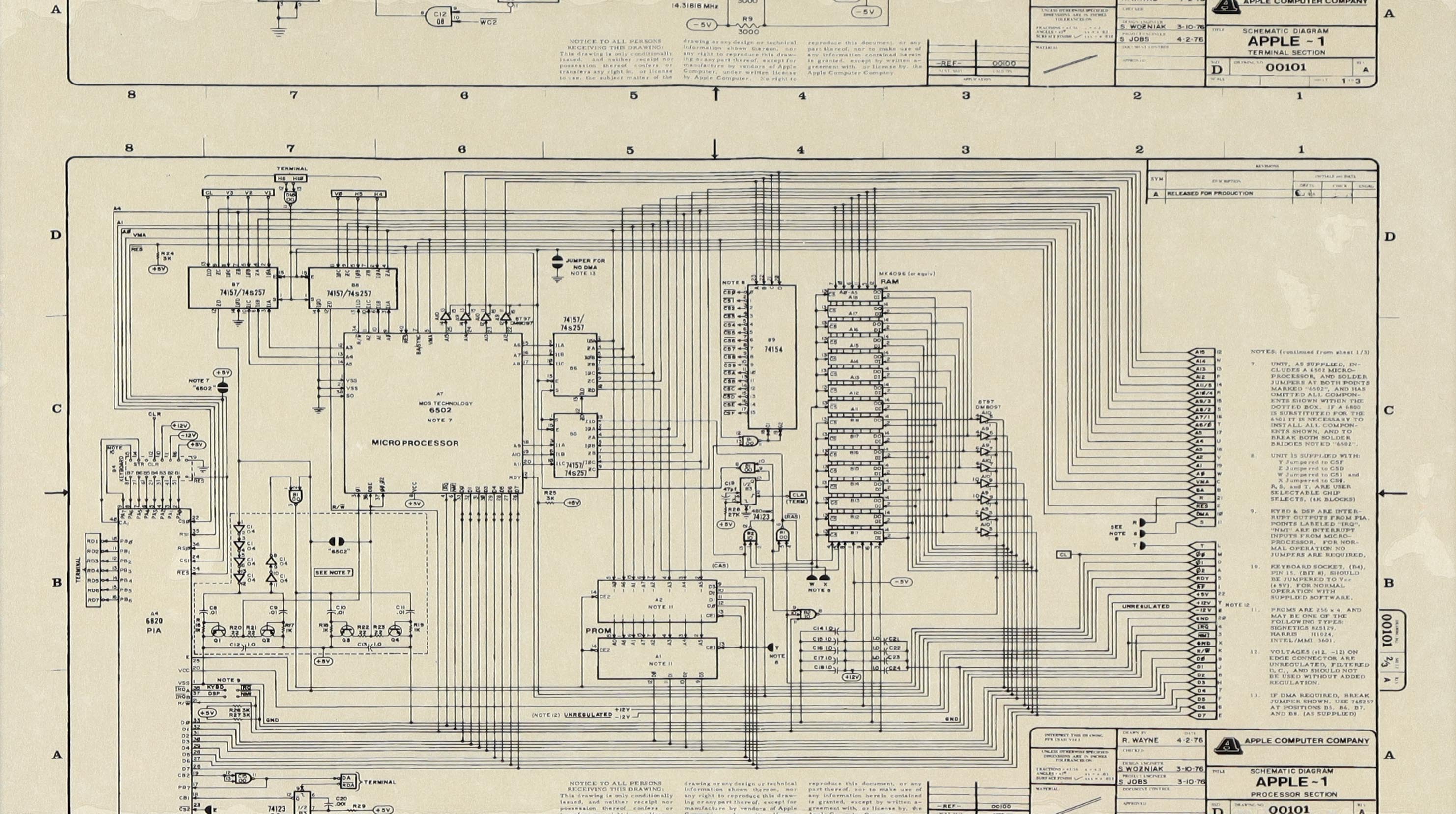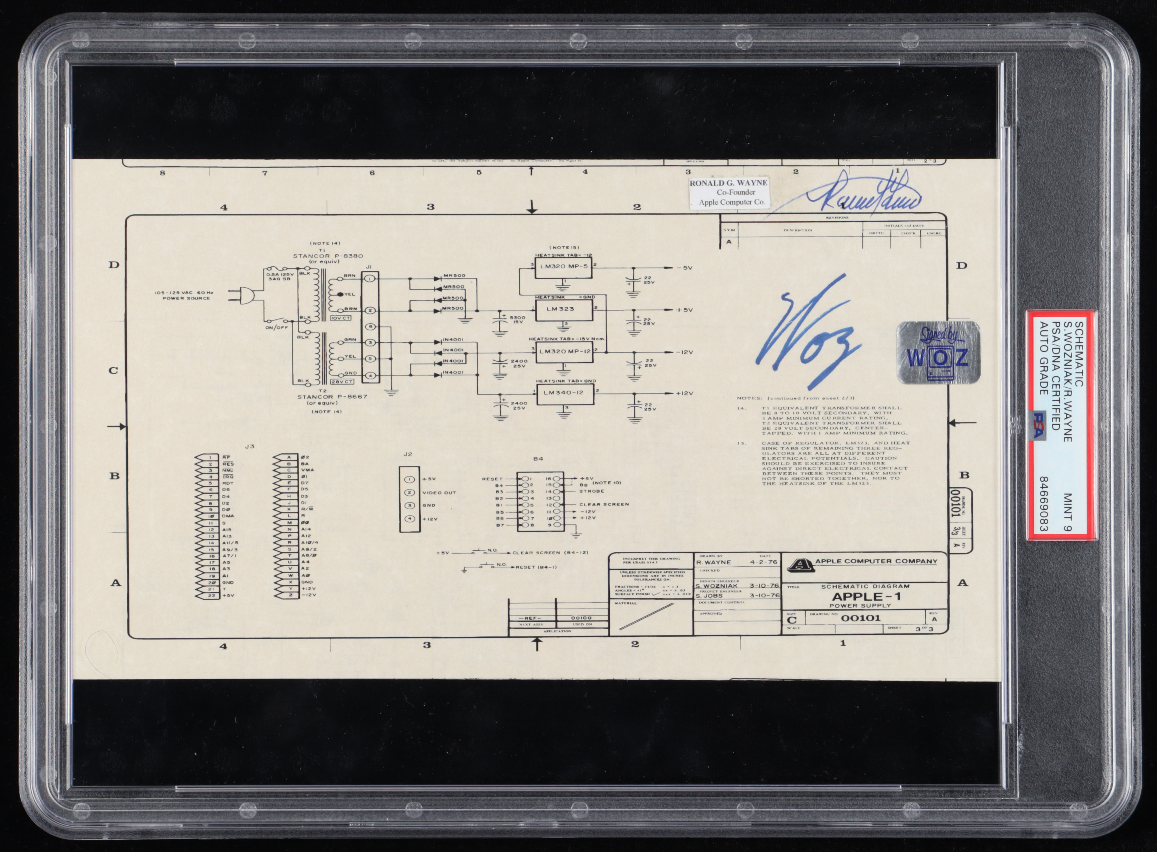 Steve Wozniak & Ronald Wayne Signed Original Apple-1 Schematic Sheet (PSA | Autographs Graded 9)