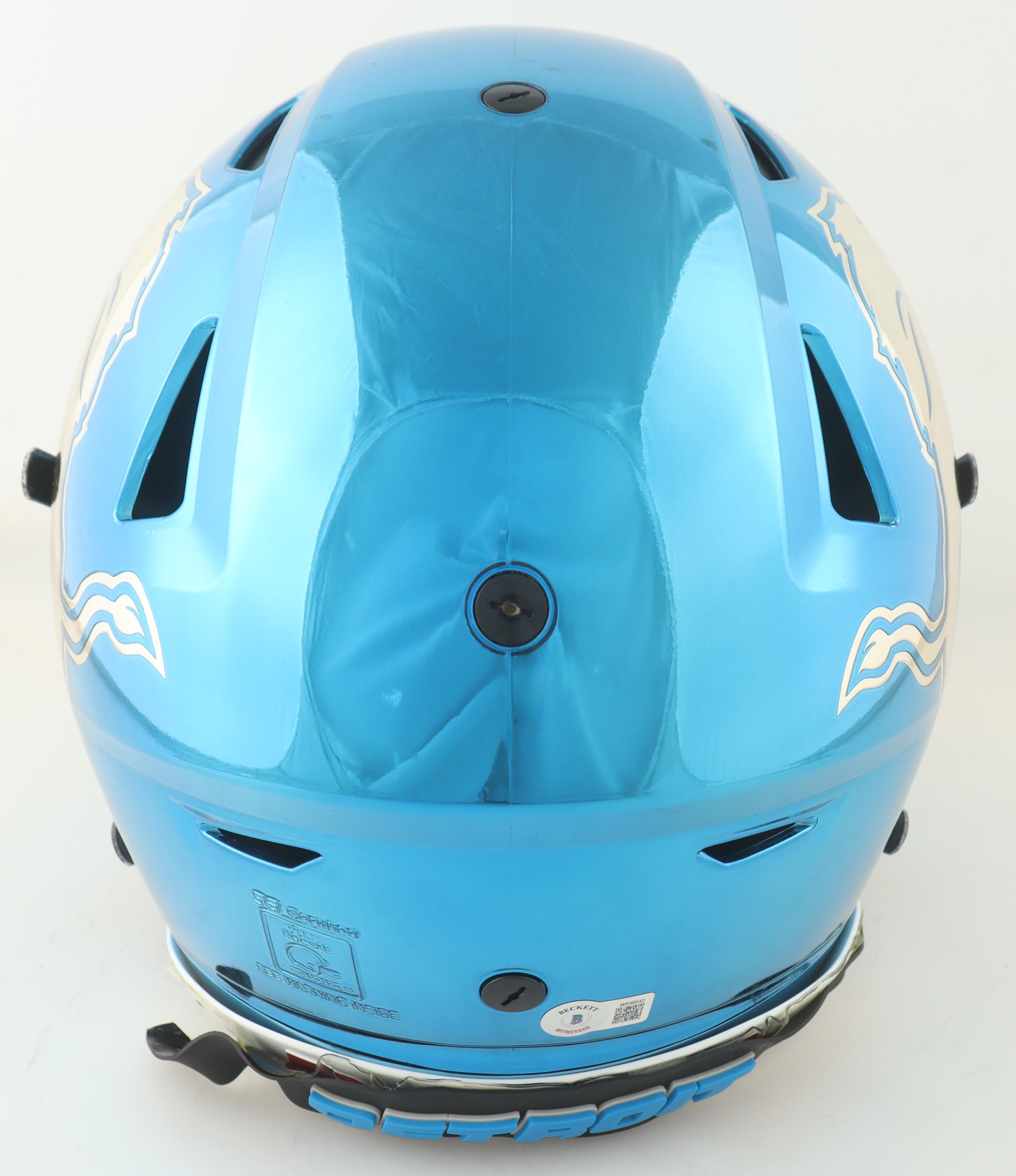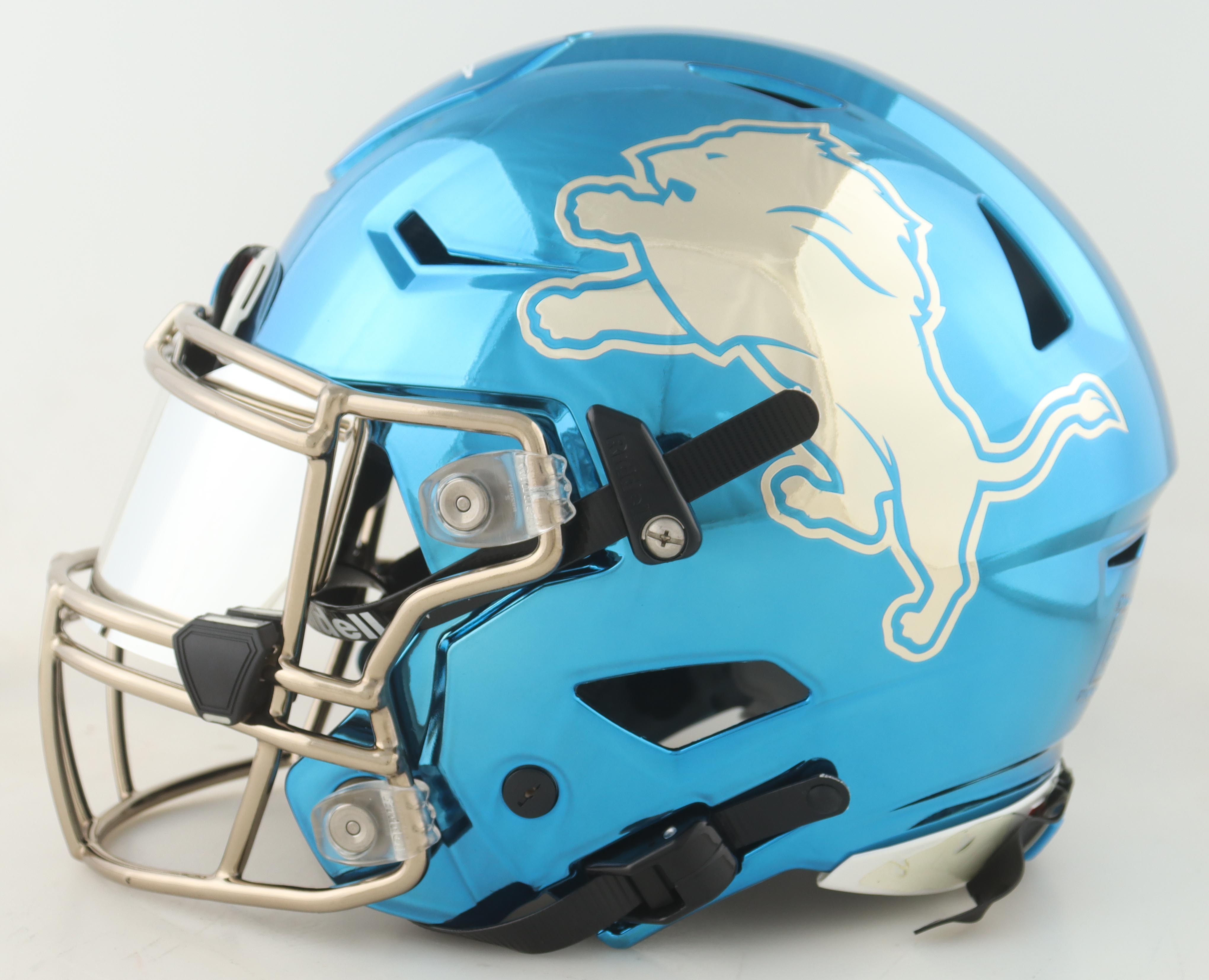 Riddell Detroit Lions full-size authentic on-field Chrome SpeedFlex helmet with visor. Hand-signed by Barry Sanders (HOF).