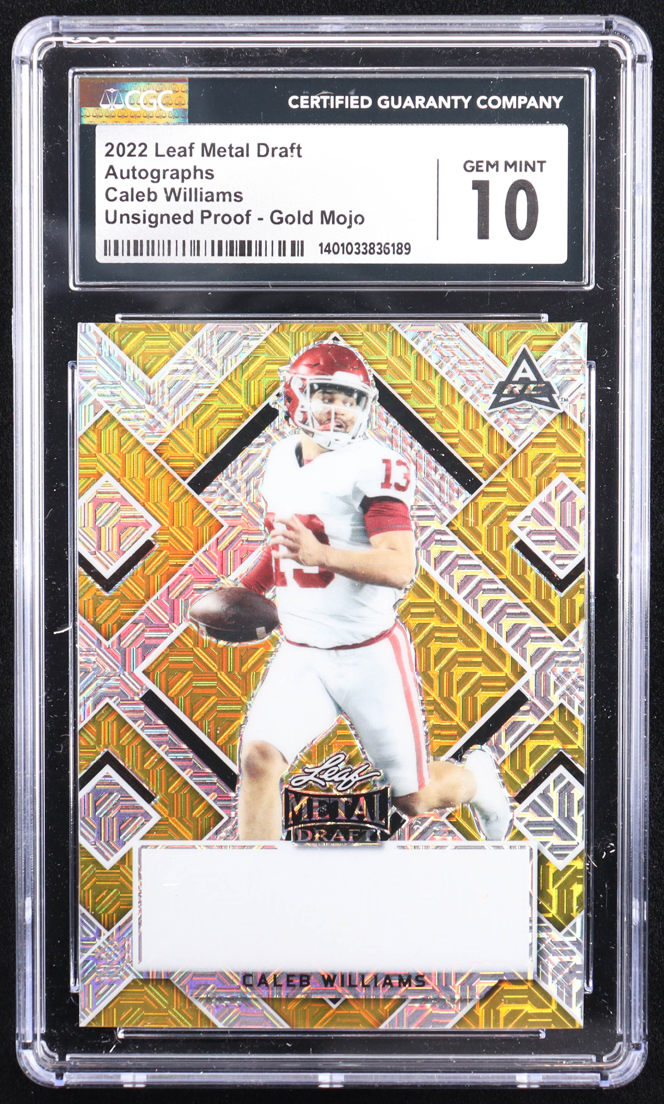 Caleb Williams 2022 Leaf Metal Draft Autographs Gold Mojo Pre-Production Proof #NNO #1/1 RC (CGC 10)