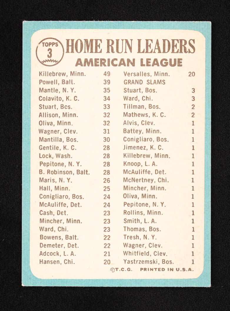 Harmon Killebrew / Mickey Mantle / Boog Powell 1965 Topps #3 AL Home Run Leaders