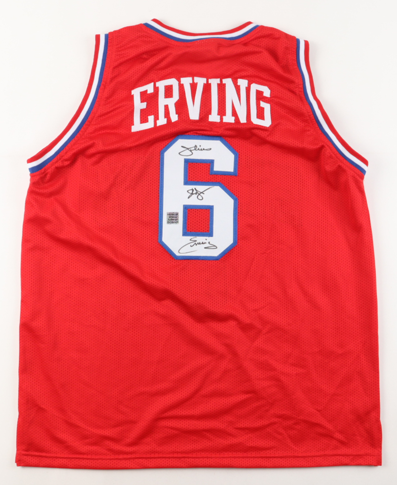 Custom jersey with everything sewn on, size XL. Has been hand-signed by Julius "Dr. J" Erving (HOF).