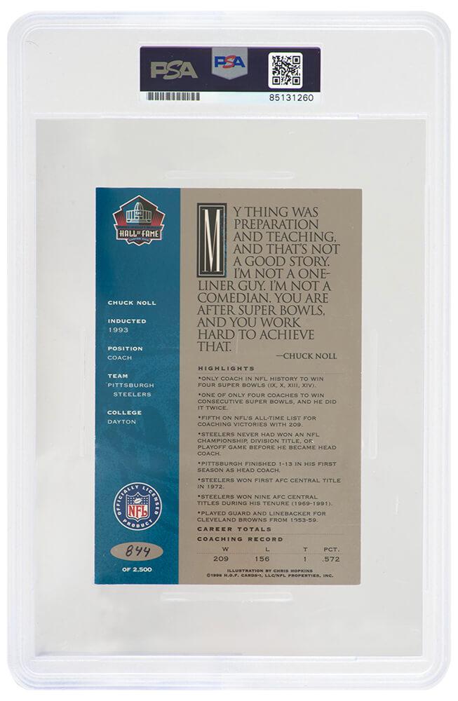 Chuck Noll Signed Pro Football Hall of Fame 4x6 Signature Series Card (PSA)
