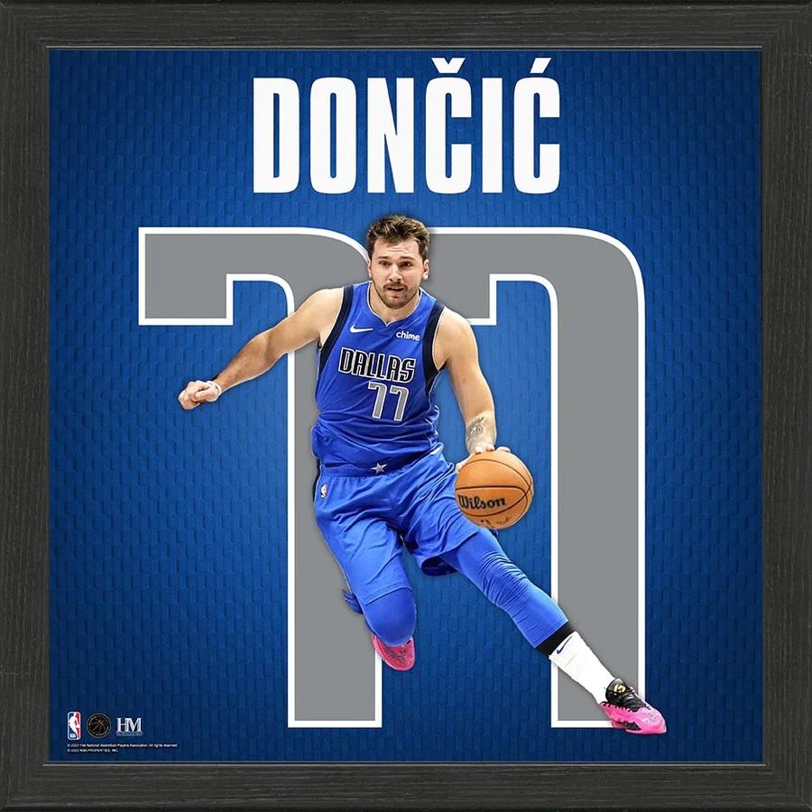 Custom frame measures 13" x 13" in size and features a photo of the jersey number for Luka Doncic (Dallas Mavericks). Please note, this is not a framed jersey but a photo of the jersey number and this item is unsigned.