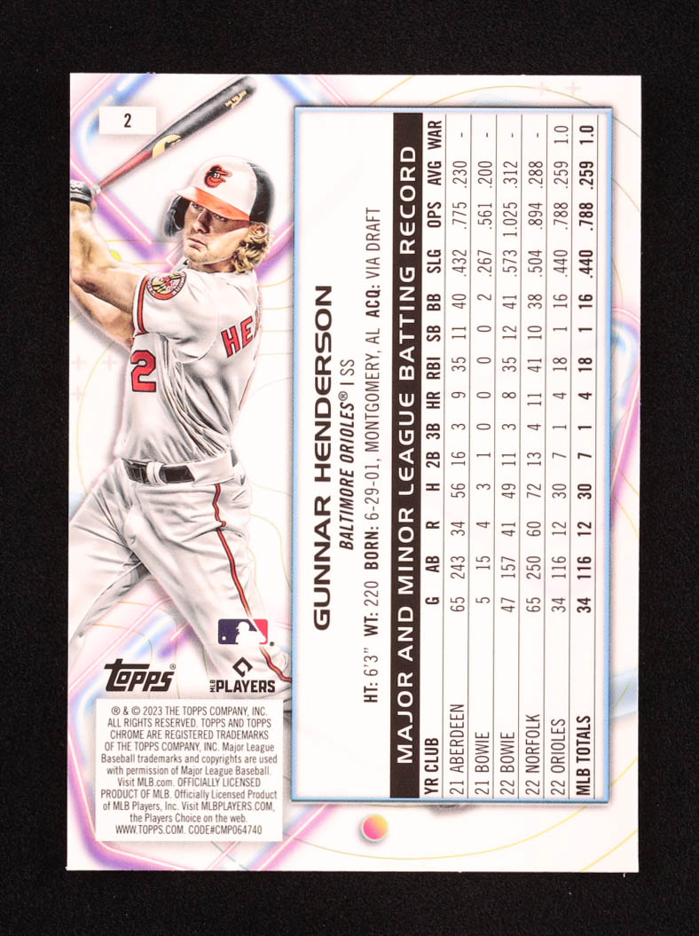 Gunnar Henderson 2023 Topps Cosmic Chrome #2 RC