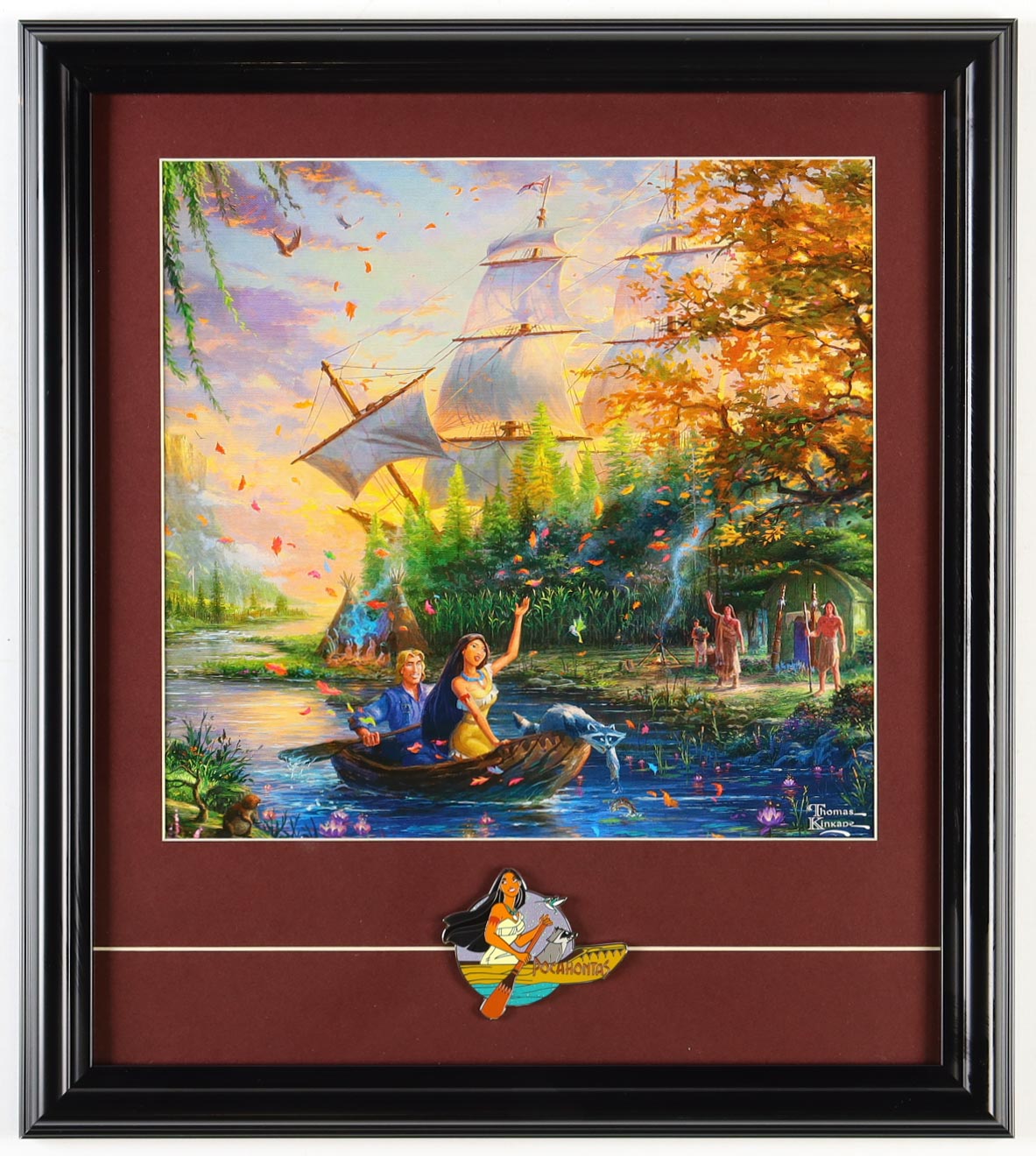 Thomas Kinkade "Pocahontas" Custom Framed Print Display With Pocahontas Jumbo Pin