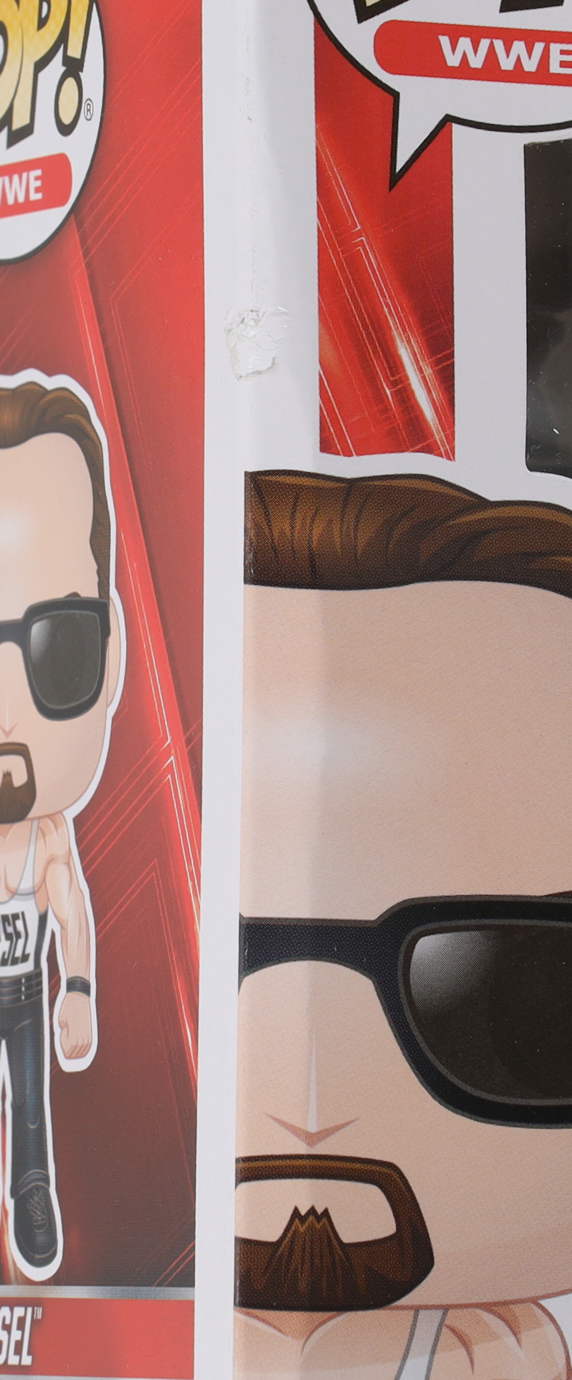 Vinyl figure measures approximately 4" tall and has been hand-signed on the packaging by Kevin Nash (HOF). Please note, creasing throughout the packaging.