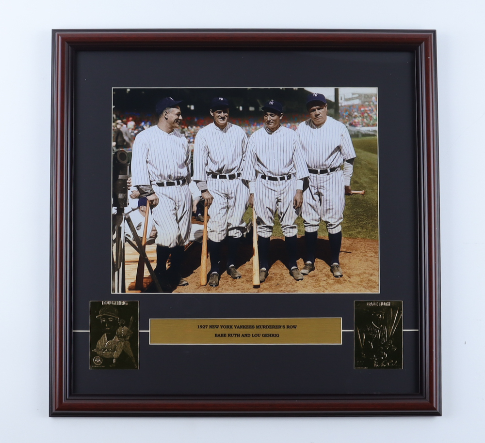 Babe Ruth & Lou Gehrig "The Murderer's Row" Yankees Custom Framed Photo Display with (2) 22Kt Gold Trading Cards