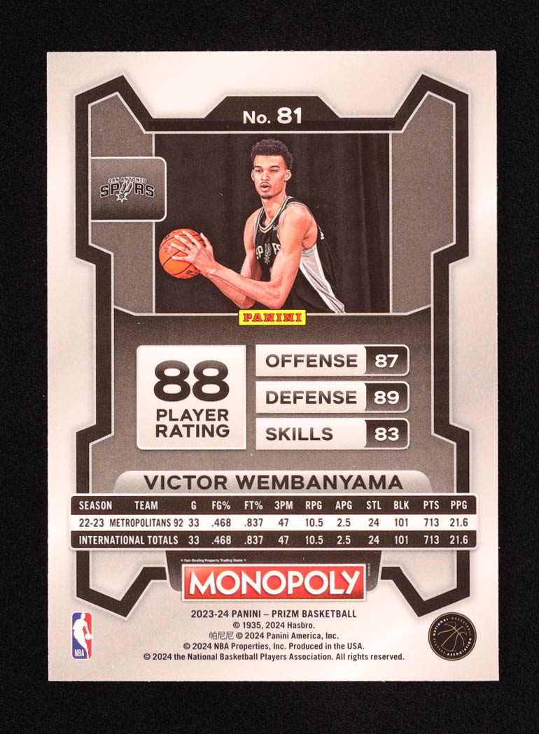 Victor Wembanyama 2023-24 Panini Prizm Monopoly #81 RC