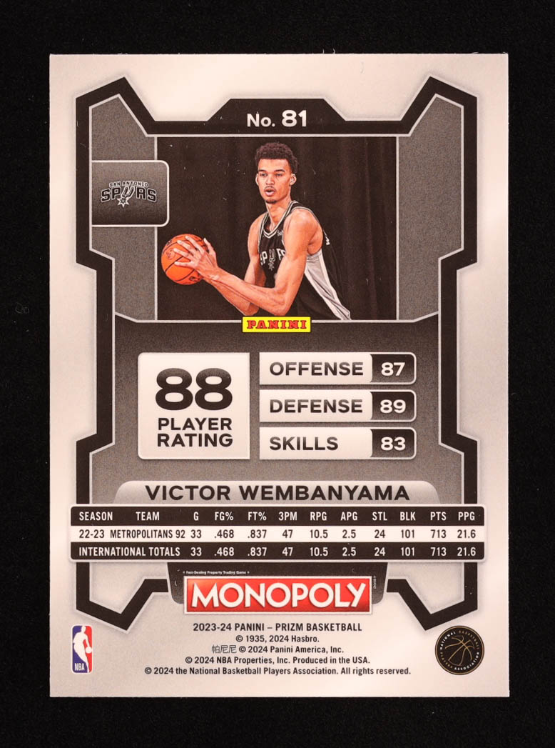 Victor Wembanyama 2023-24 Panini Prizm Monopoly #81 RC