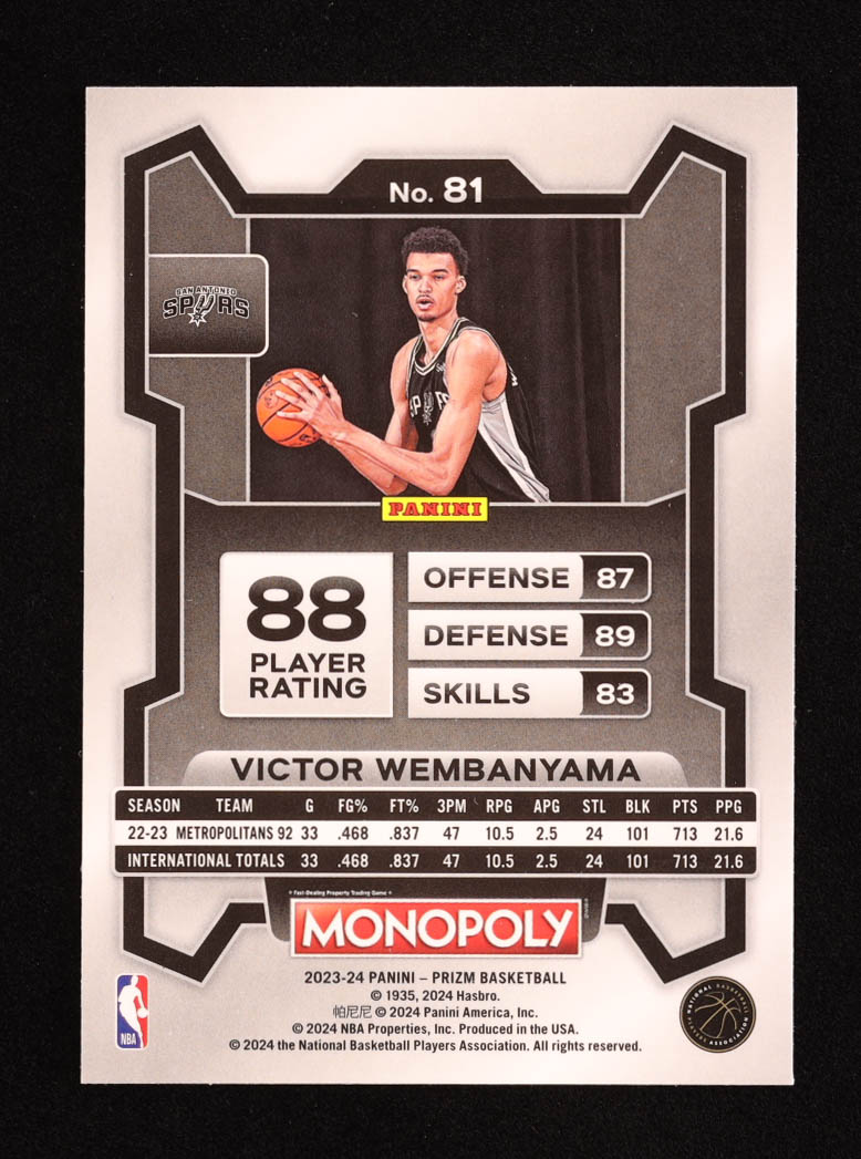 Victor Wembanyama 2023-24 Panini Prizm Monopoly #81 RC