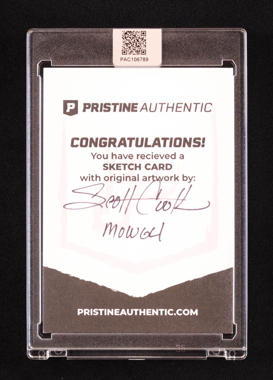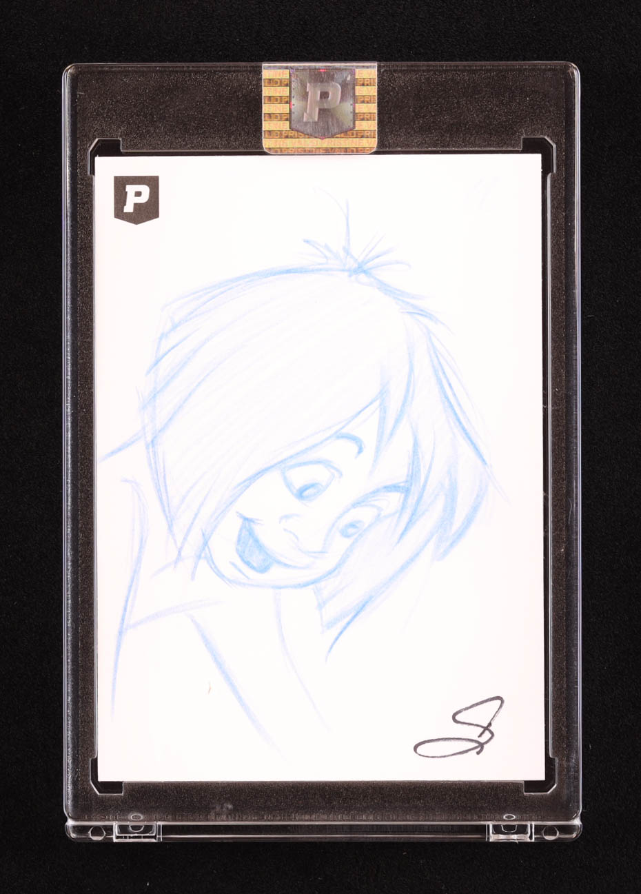 This original sketch card includes original art by award winning Walt Disney artist, Scott Cook. The card is hand-signed along with a character name inscription on the back by the artist.