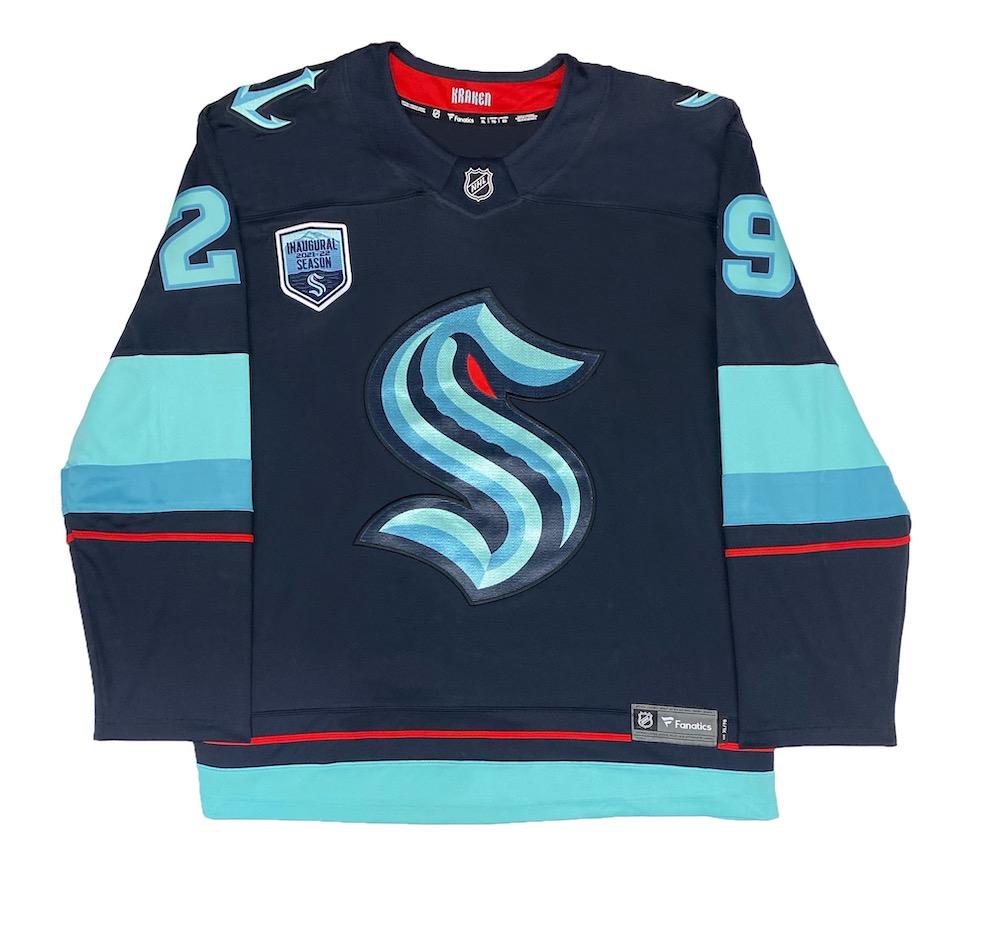 Fanatics style jersey with everything sewn on, size 54. Hand-signed by Vince Dunn (Seattle Kraken).