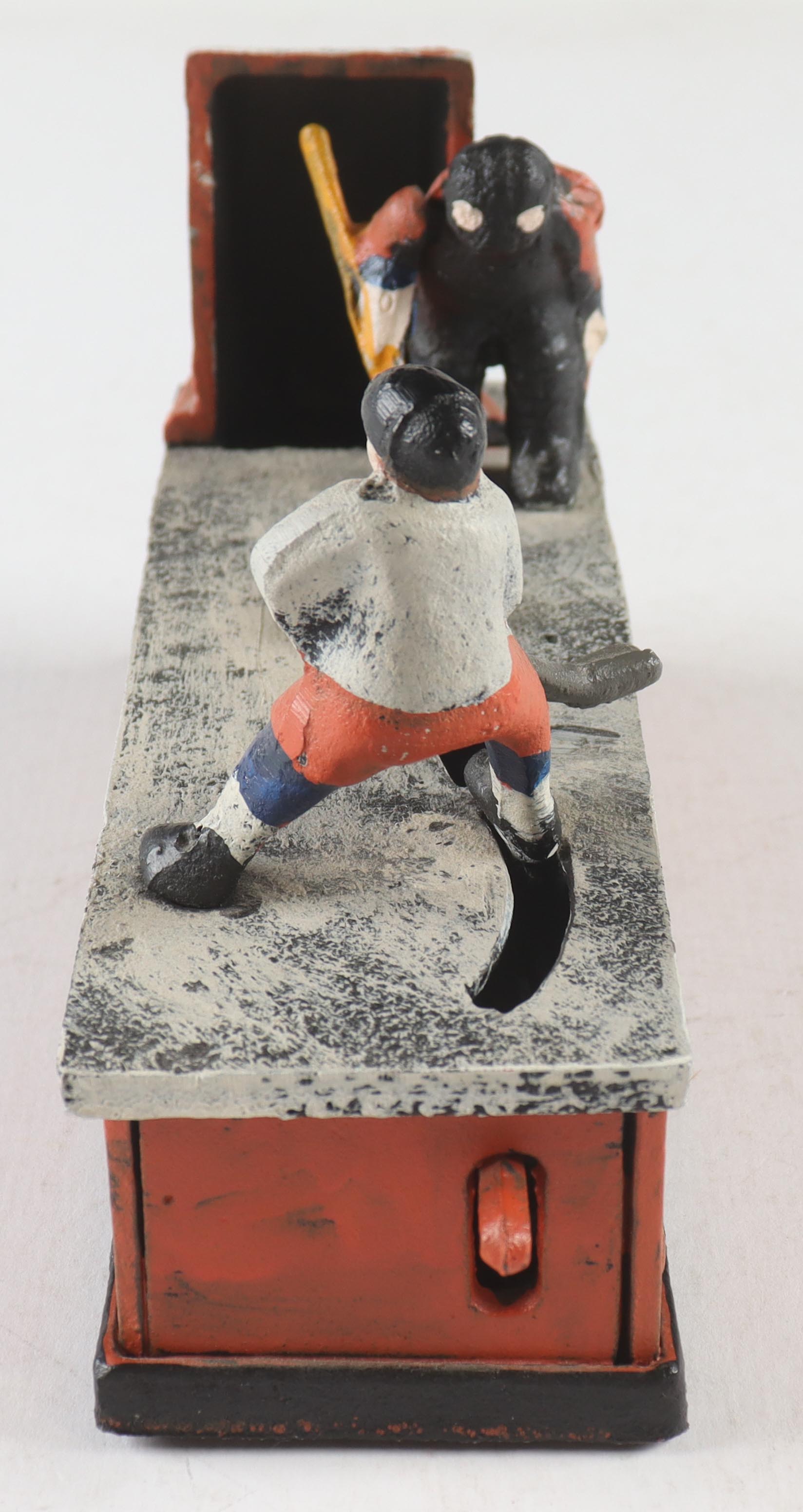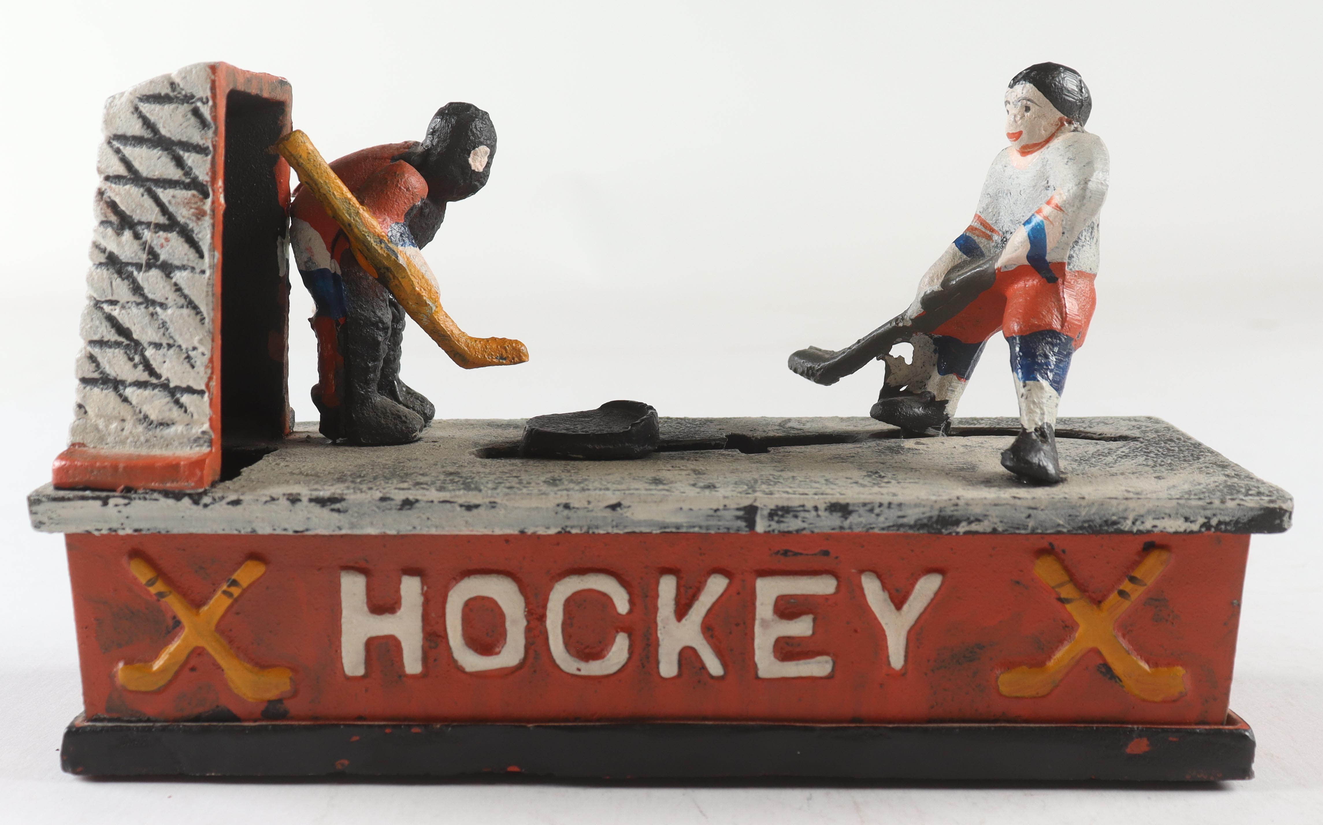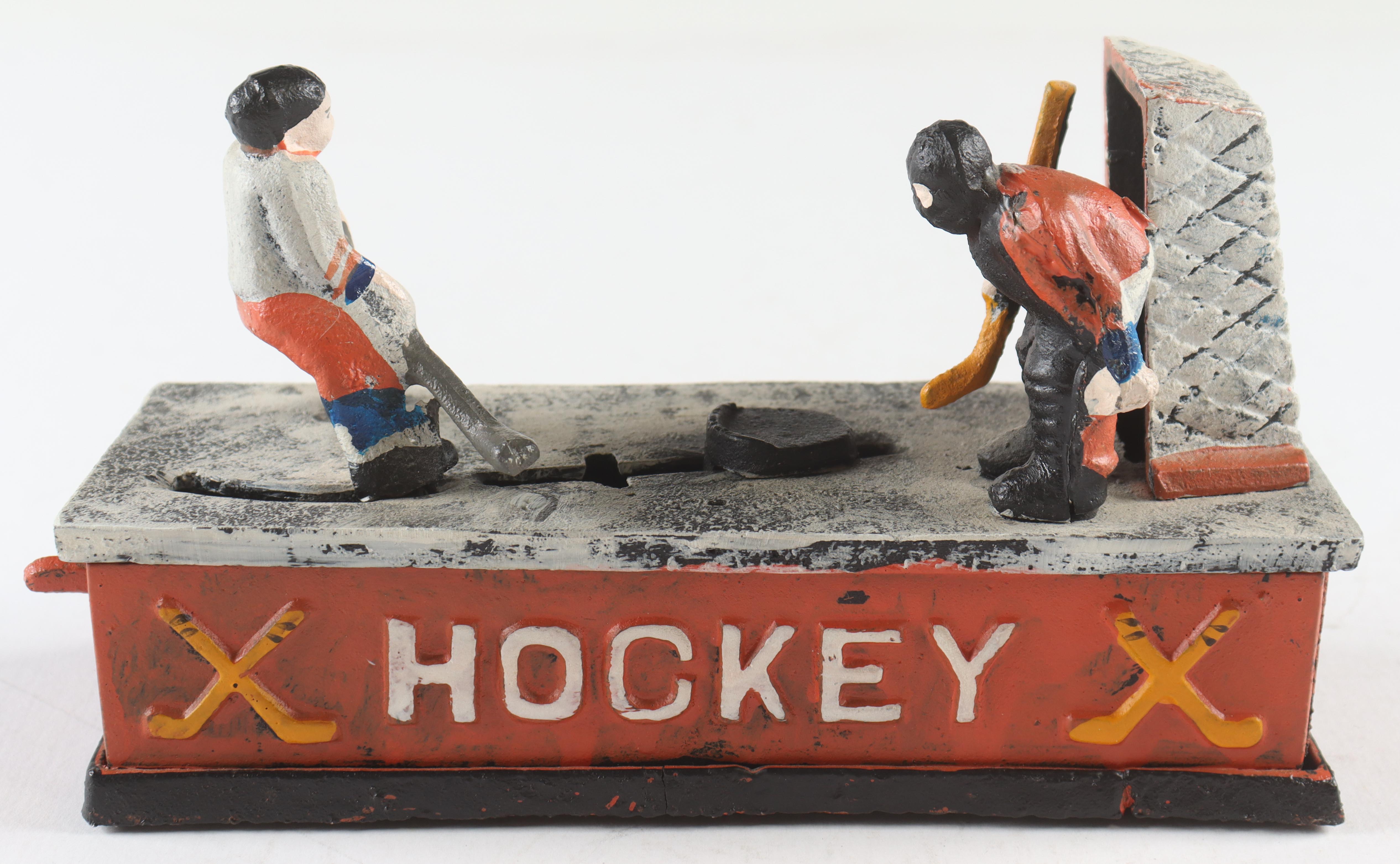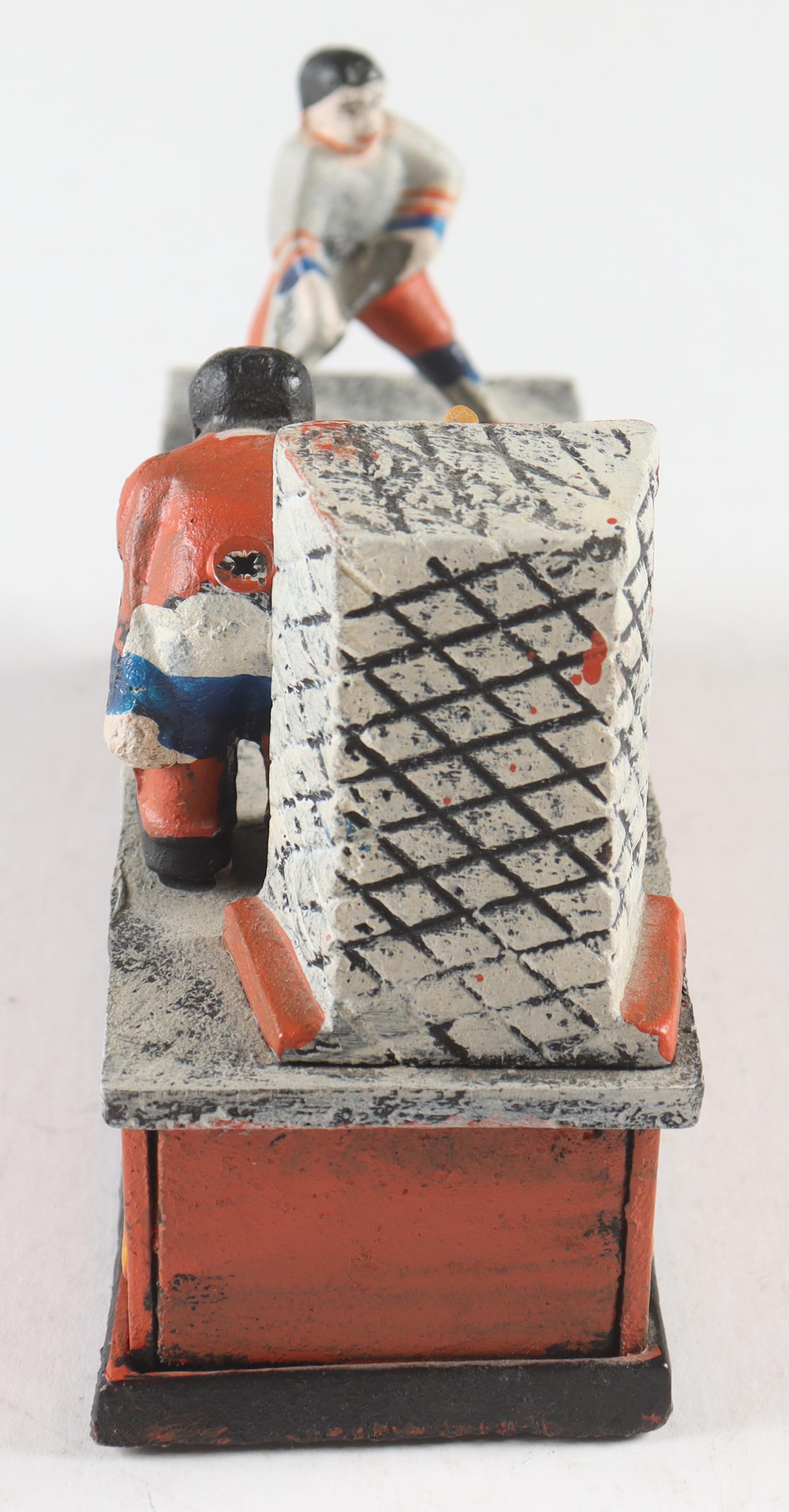 Vintage Mechanical Hockey Shot Iron Coin Bank
