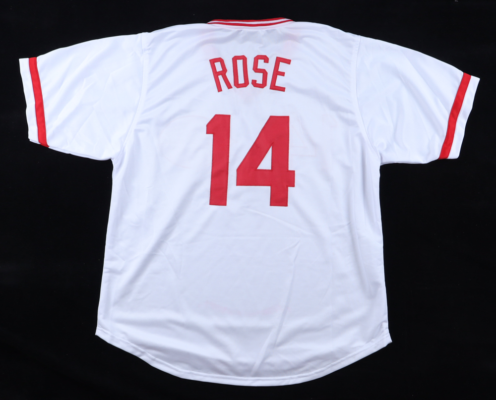 Custom baseball jersey. Everything sewn on, size XL. Hand-signed and inscribed by Pete Rose.