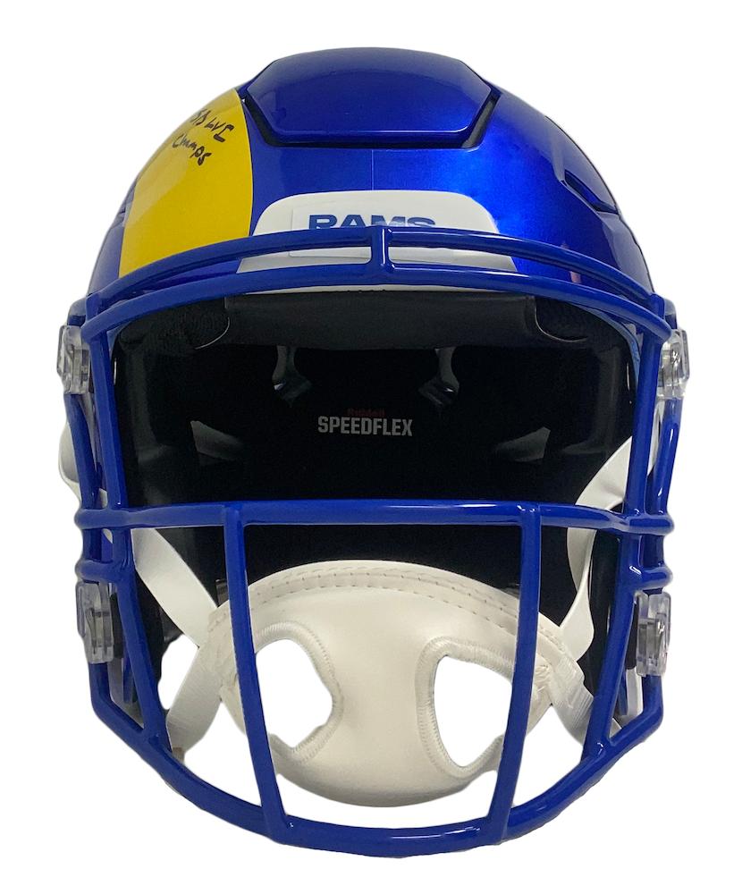 Riddell Los Angeles Rams | Super Bowl LV Champions logo full-size authentic on-field speedflex helmet. Hand-signed and inscribed by Odell Beckham Jr.
