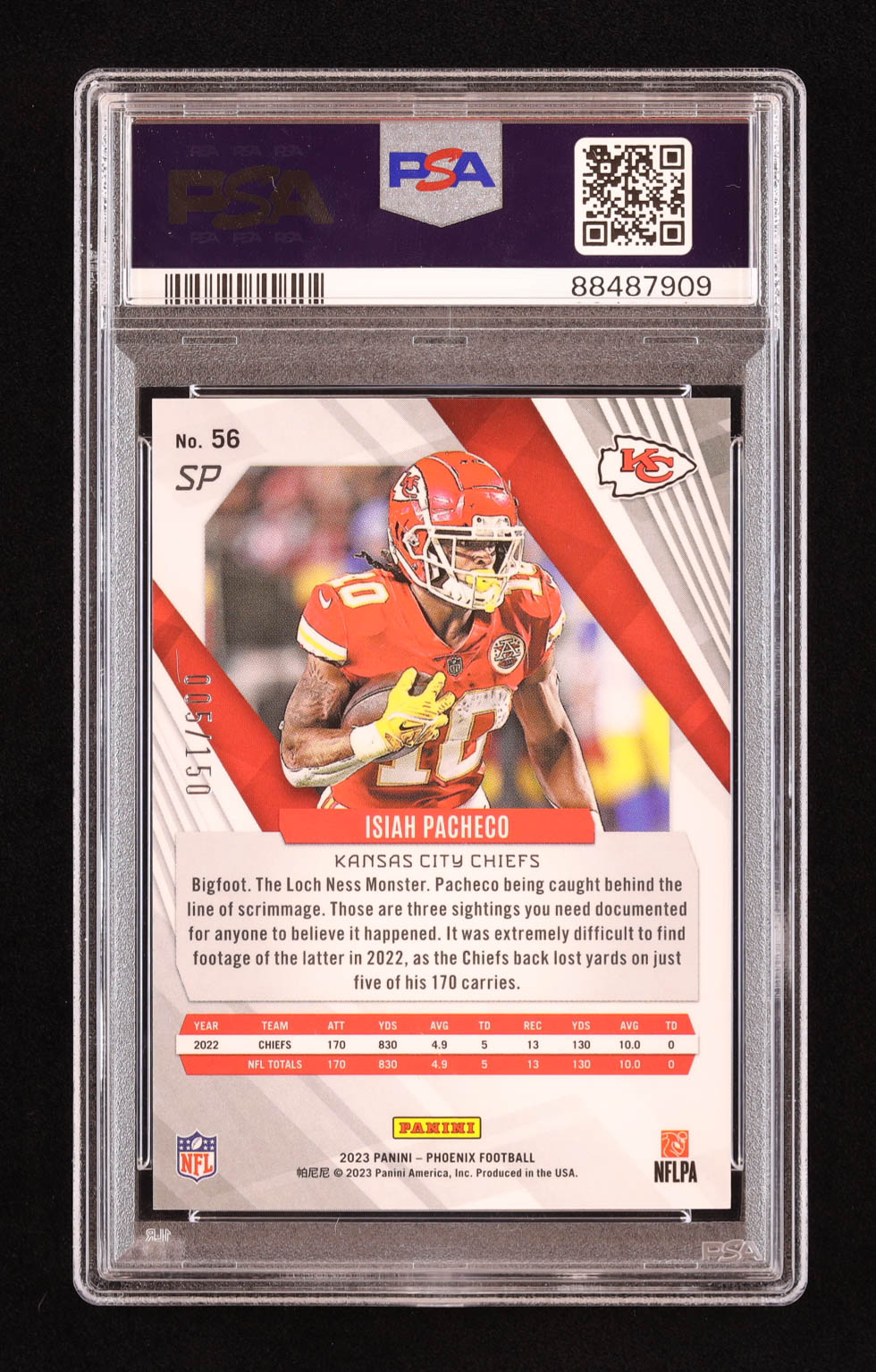 Isiah Pacheco 2023 Panini Phoenix SP Lava #56 #5/150 (PSA 9)
