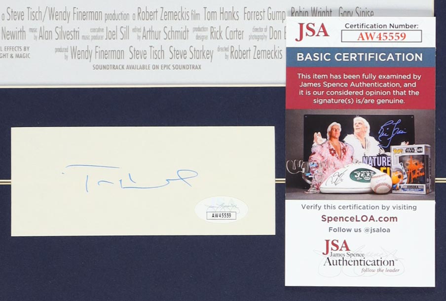 Custom framed display measures approximately 17" x 26" in size and features a cut that has been hand-signed by Tom Hanks.