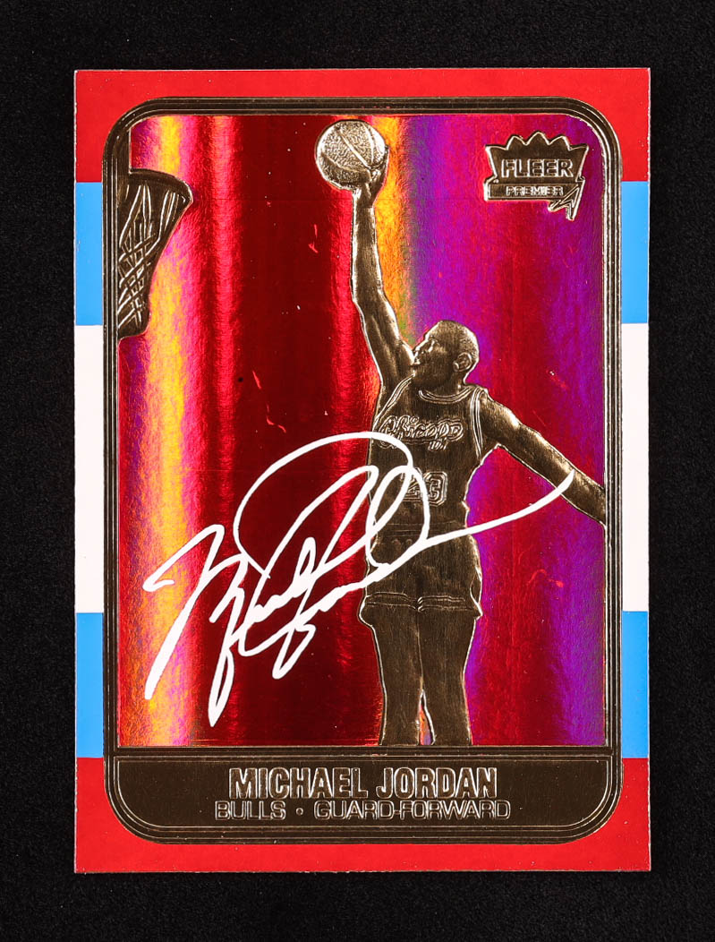Michael Jordan 1997 Fleer Premier Signature Series Red Holo Refractor 23Kt Gold Card