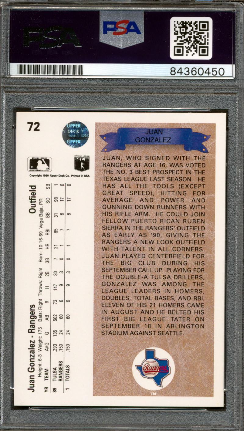 Juan Gonzalez Signed 1990 Upper Deck #72 RC (PSA)