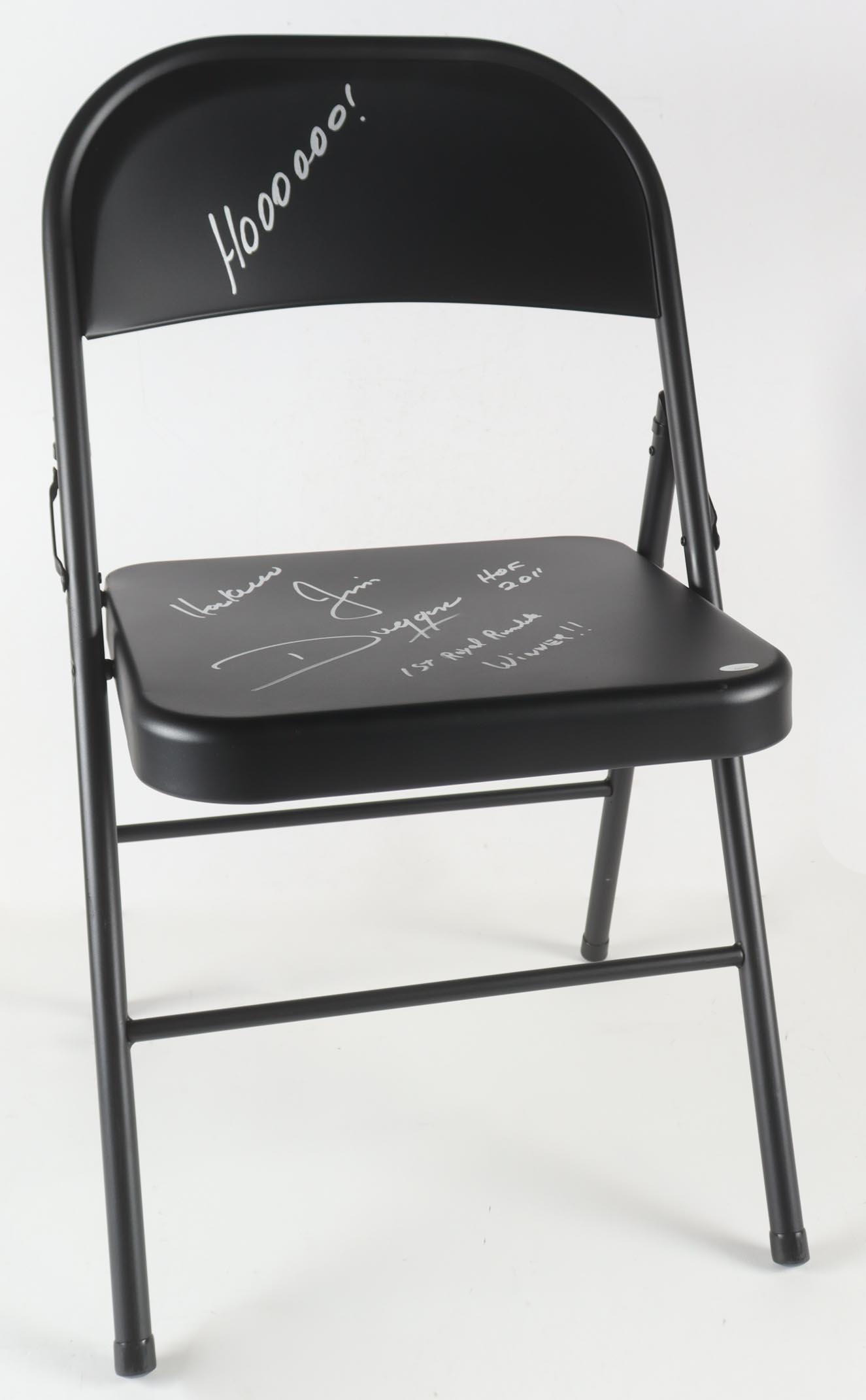 Metal folding chair has been hand-signed and inscribed by Jim Duggan (HOF).