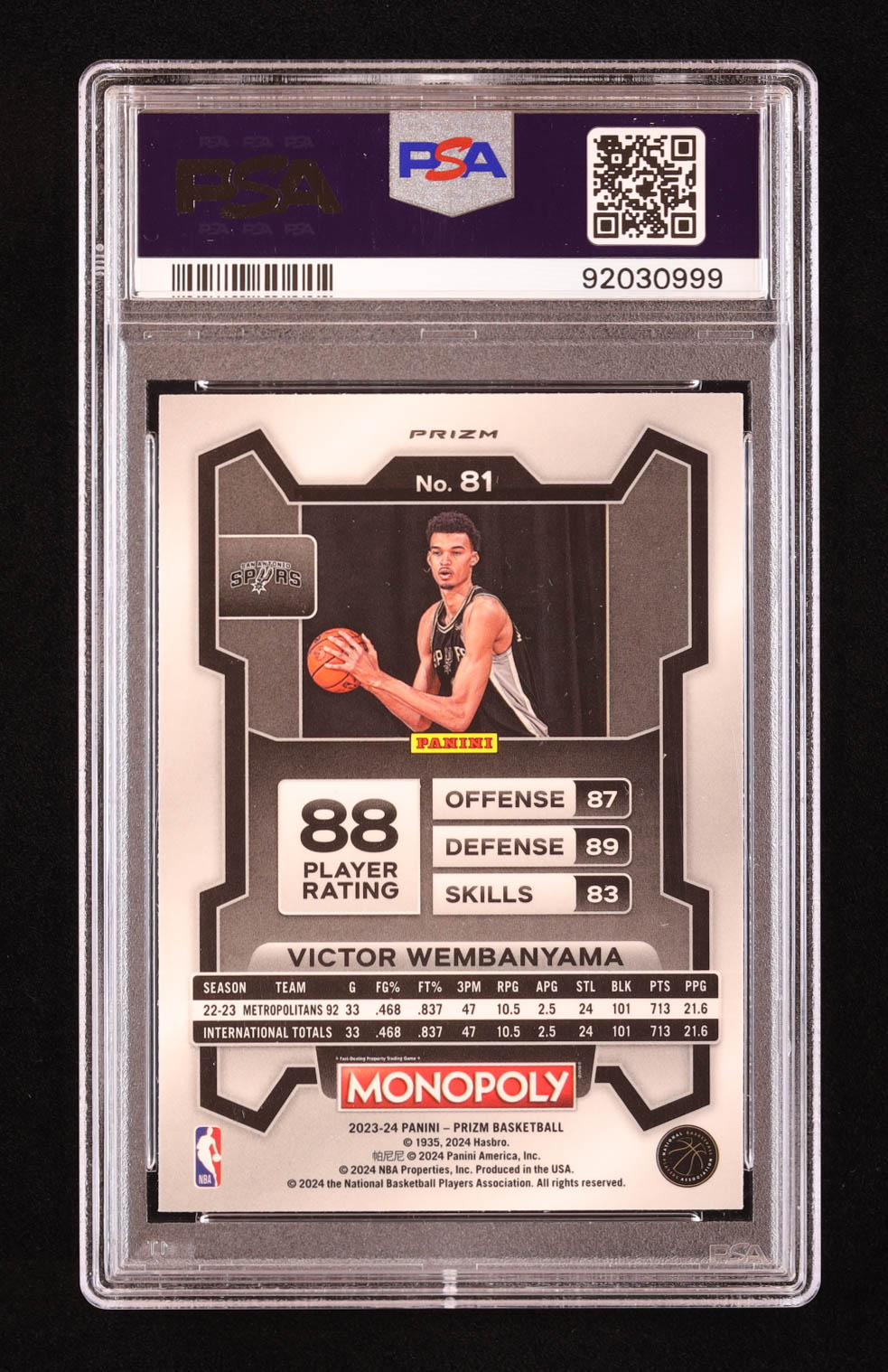 Victor Wembanyama 2023-24 Panini Prizm Monopoly Purple #81 RC (PSA 9)