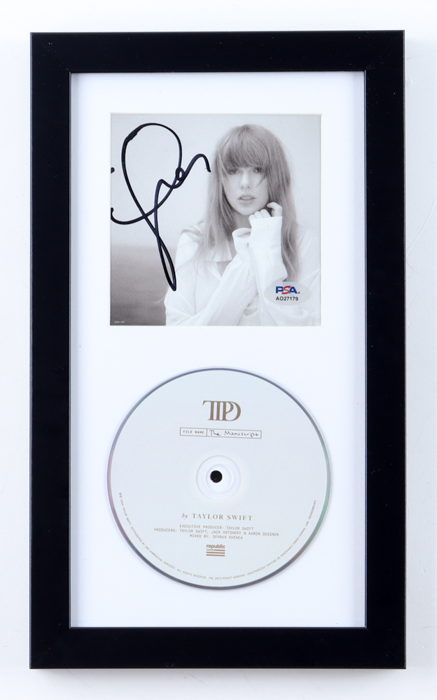 Custom frame measures approximately 8" x 13.5" in size. Features a "The Torture Poets Department" CD insert that has been hand-signed by Taylor Swift. Includes disc as shown with bonus track.
