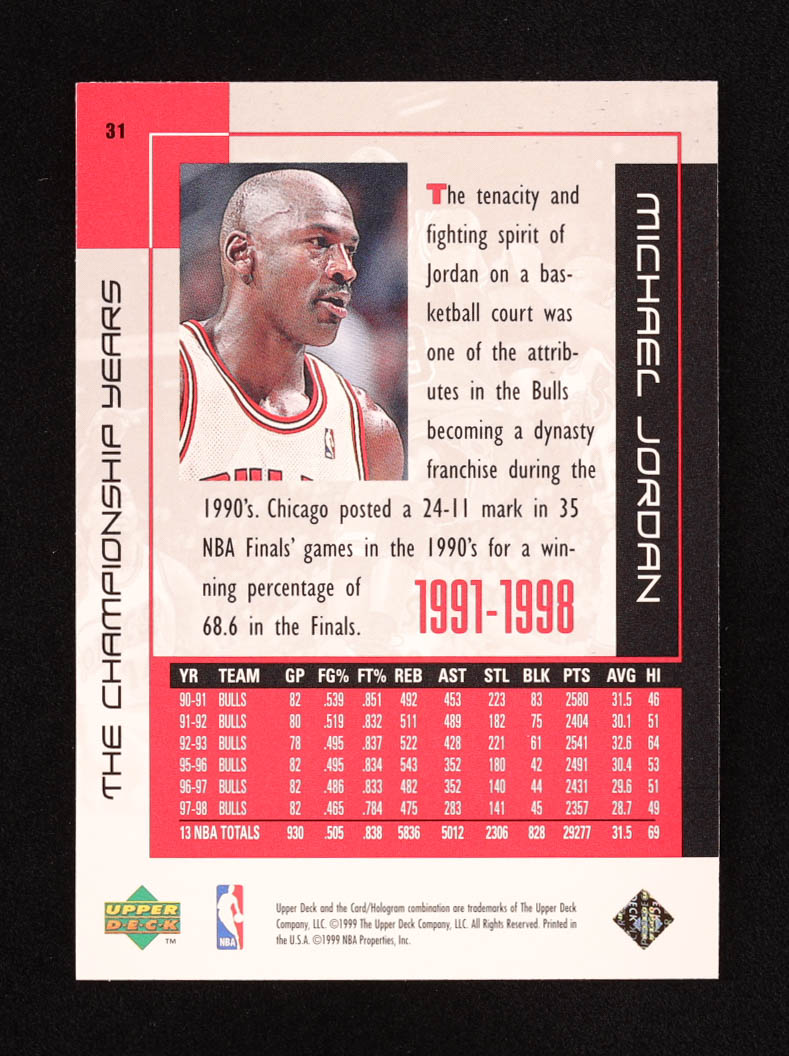 Michael Jordan 1999 Upper Deck Michael Jordan Career #31 The Championship Years