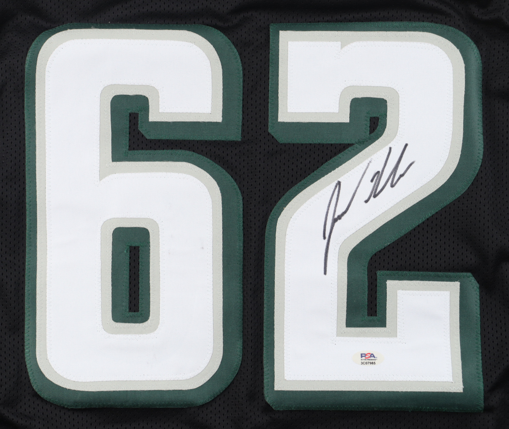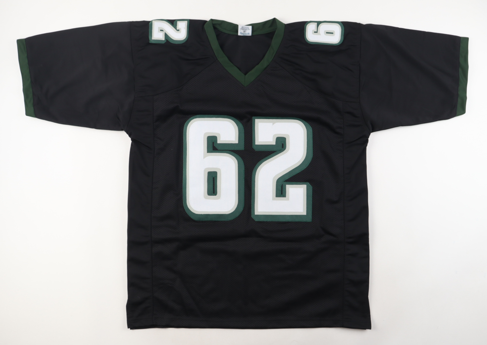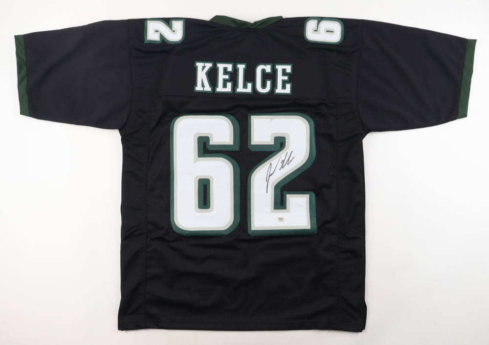 Custom style jersey with everything sewn on, size XL. Hand-signed by Jason Kelce. Please note, glue is visible through the front number and staining on the reverse number. Please see the photos for the condition of the item.
