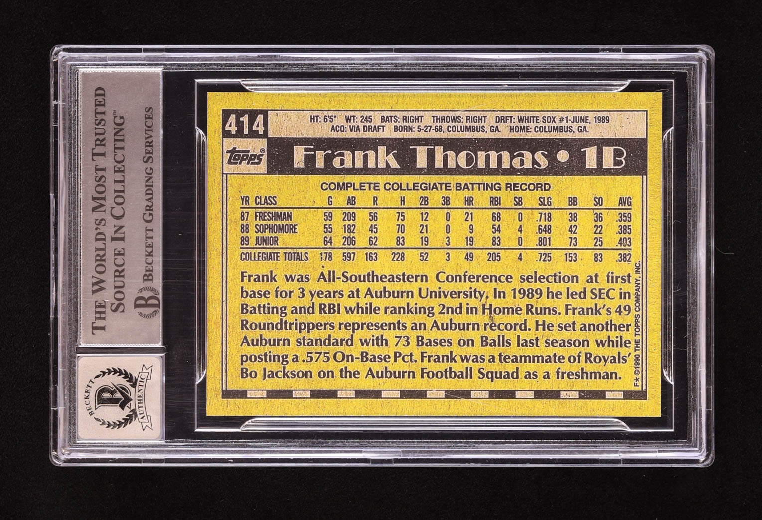 Frank Thomas Signed Custom Trading Card (BGS | Autograph Graded BGS 10)