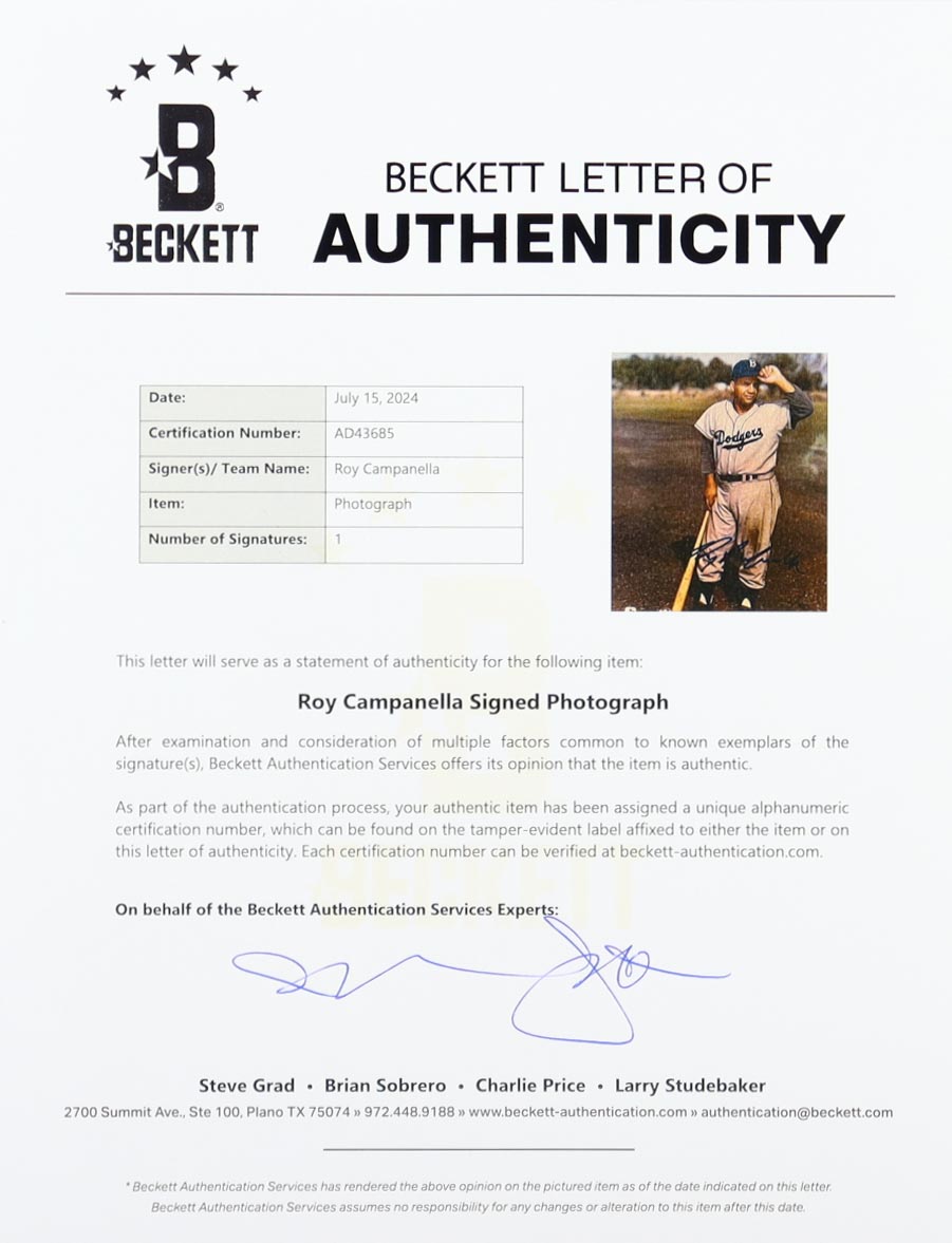 Roy Campanella Signed Dodgers 8x10 Photo (Beckett)