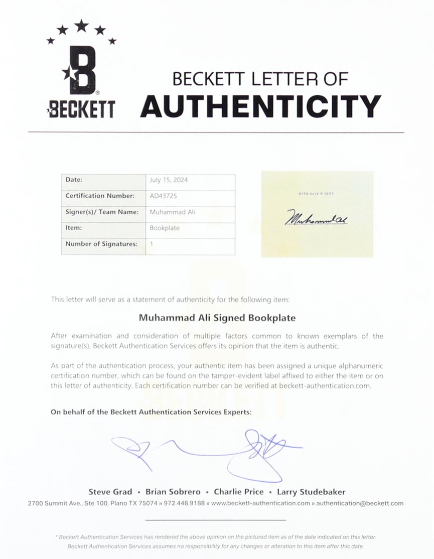 The autograph includes an official Beckett Authentication Services hologram and matching LOA for authenticity purposes.