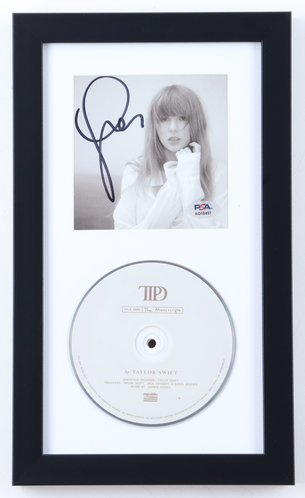 Custom frame measures approximately 8" x 13.5" in size. Features a "The Torture Poets Department" CD insert that has been hand-signed by Taylor Swift. Includes disc as shown.