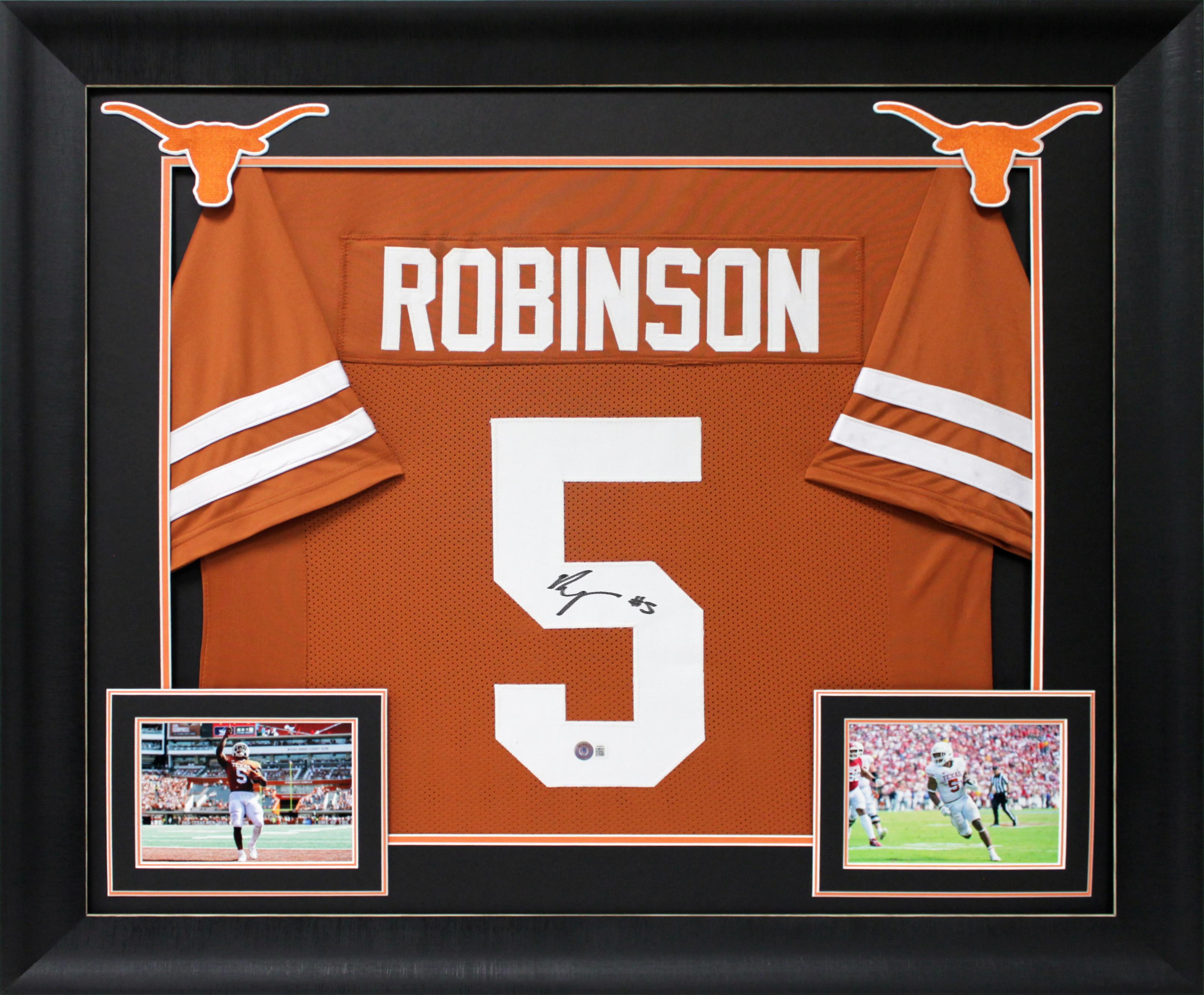 Custom frame measures 32" x 37" in size and features a jersey that has been hand-signed by Bijan Robinson.