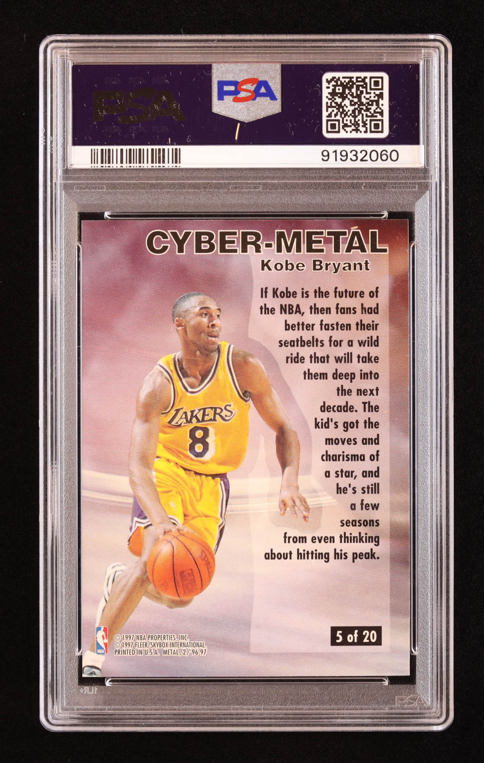 Kobe Bryant 1996-97 Metal Cyber-Metal #5 RC (PSA 8)