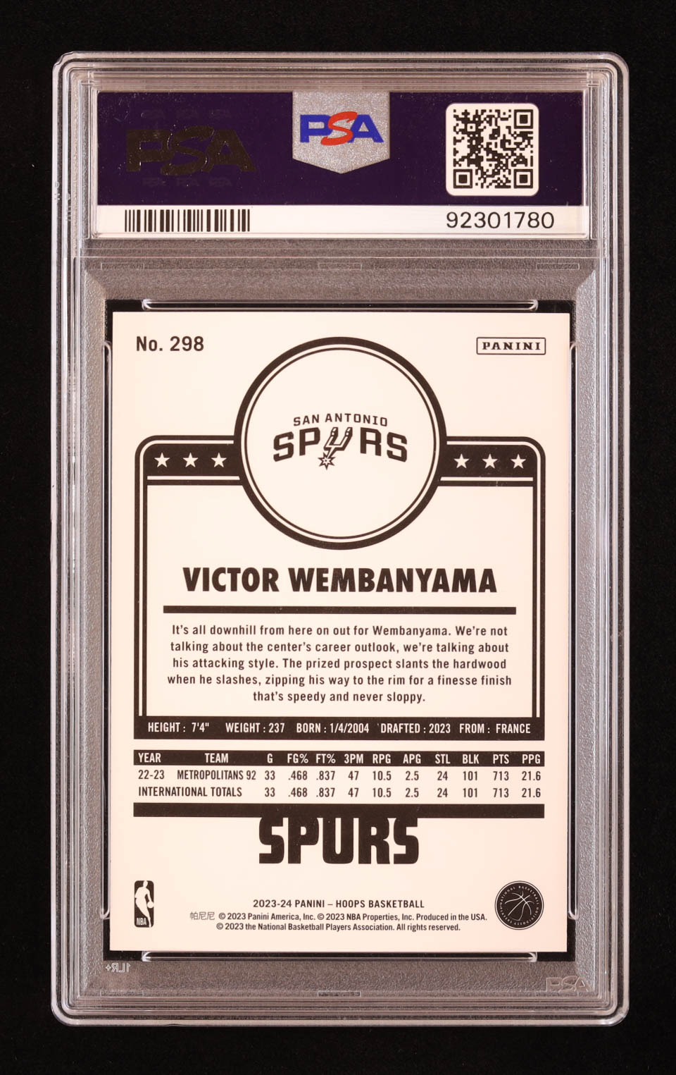 Victor Wembanyama 2023-24 Hoops Winter #298 RC (PSA 10)
