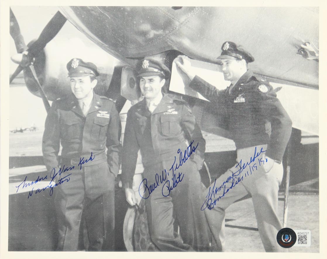 Enoly Gay Crew 8x10 Photo Signed by (3) with Paul Tibbets, Thomas Ferebee & Theodore "Dutch" Van Kirk with Role Inscriptions (Beckett)
