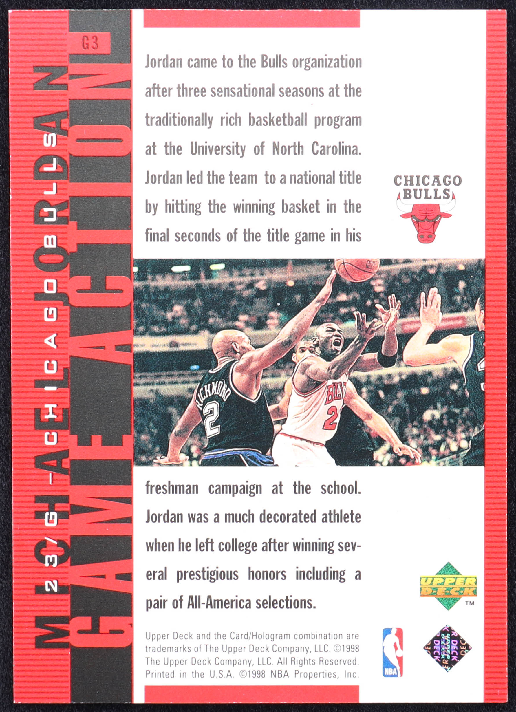 Michael Jordan 1998 Upper Deck Michael Jordan Living Legend Game Action Red #G3 #1818/2300