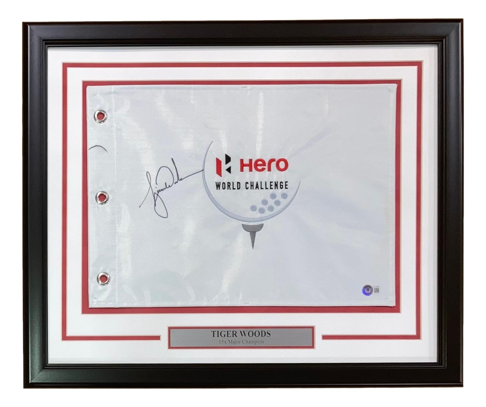 Tiger Woods Signed Hero World Challenge Custom Framed Golf Flag (Beckett)