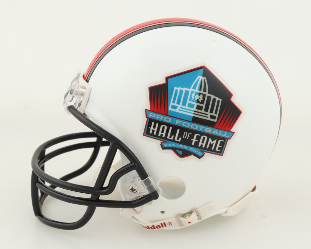 Riddell Pro Football Hall of Fame Logo Mini Helmet. Hand-signed by Aaron Donald (Los Angeles Rams).