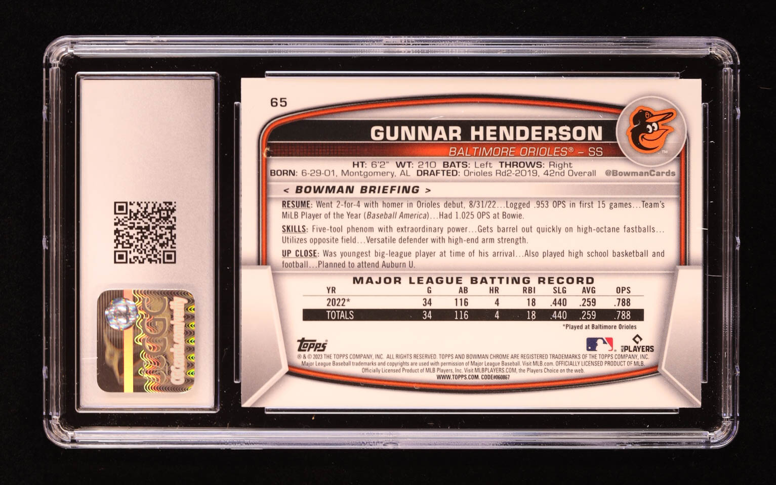 Gunnar Henderson 2023 Bowman Chrome Mega Box #65 RC (CGC 10)