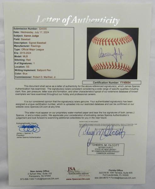 Rawlings Official Major League baseball has been hand-signed by Aaron Judge (New York Yankees).
