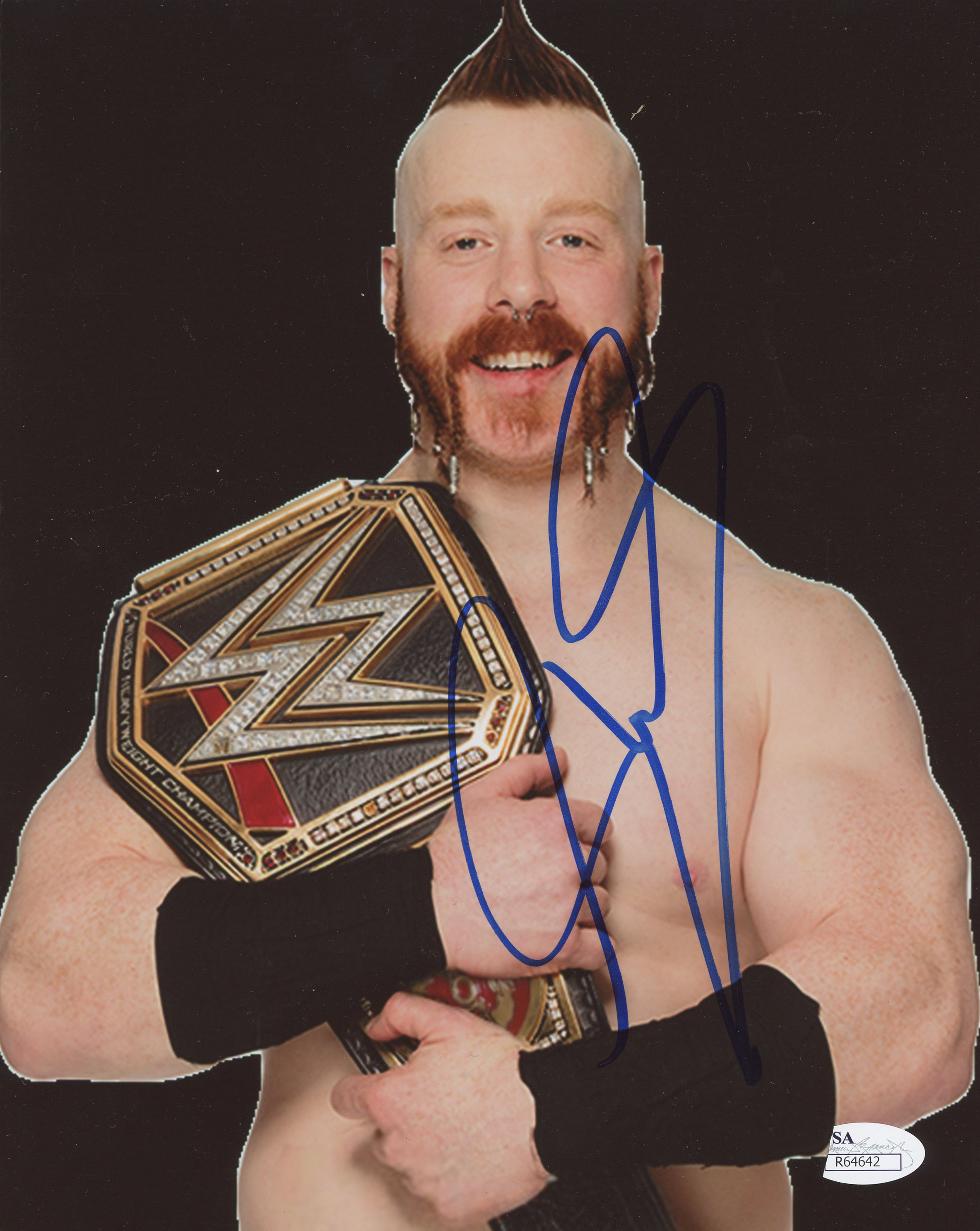 Photo measures 8" x 10" in size and has been hand-signed in blue felt-tip pen by Stephen "Sheamus" Farrelly (WWE).