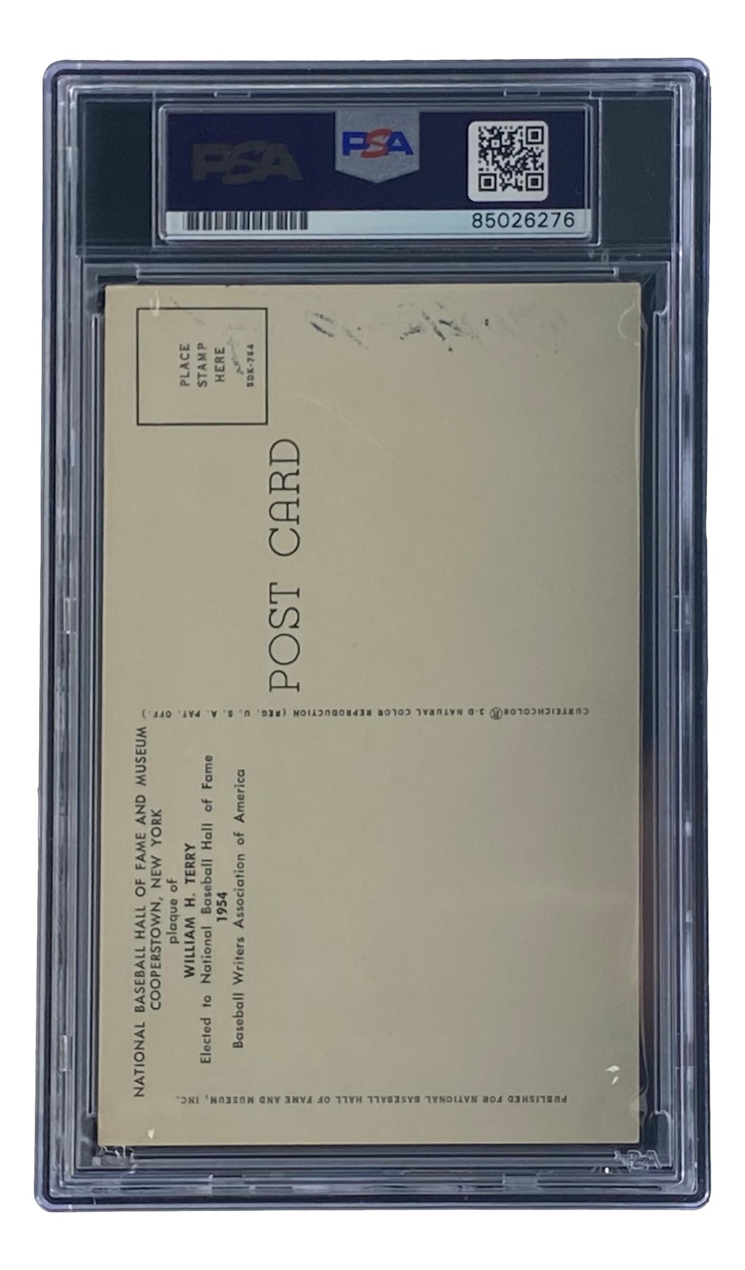 Bill Terry Signed Hall of Fame Plaque Postcard (PSA)