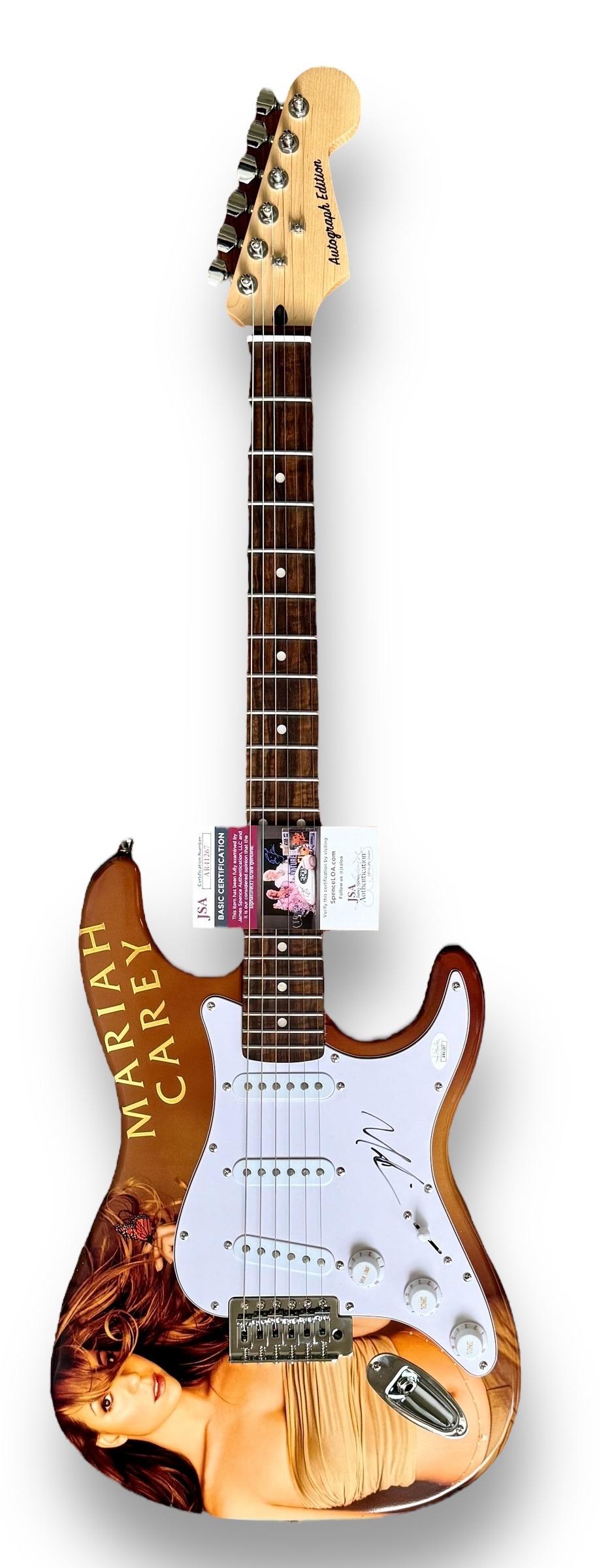 Custom Autograph Edition Stratocaster style electric guitar measures approximately 39" in length and has been hand-signed on the pickguard by Mariah Carey.