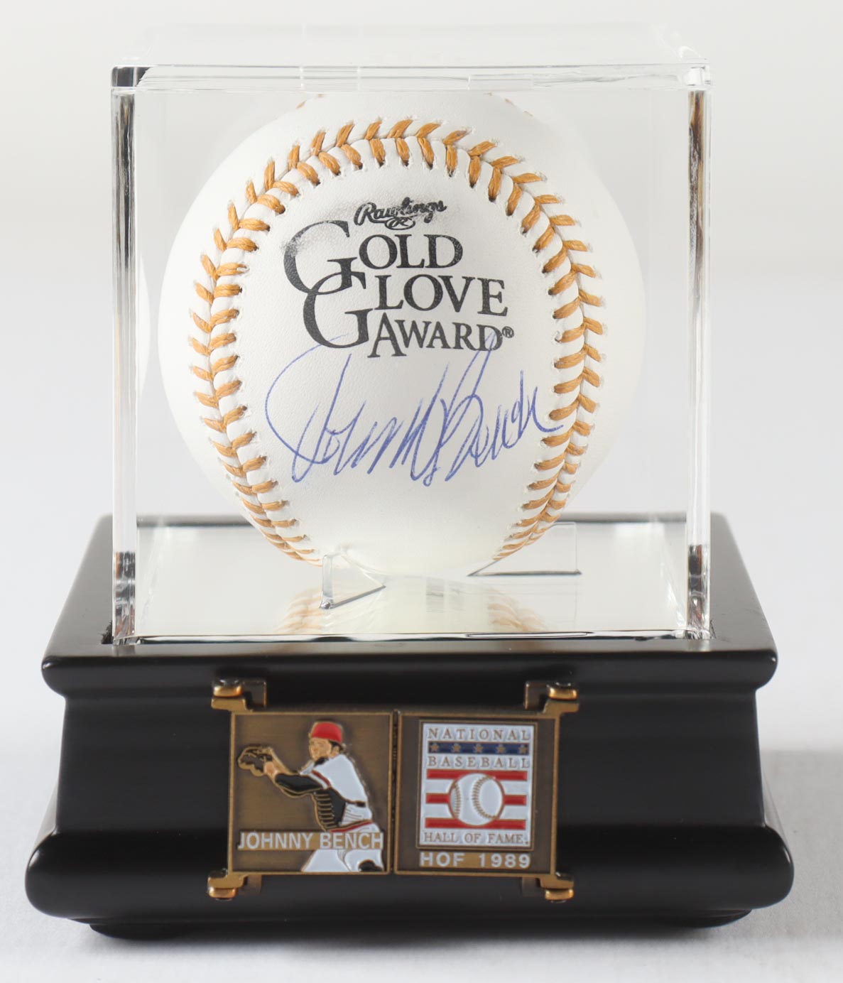 Johnny Bench Signed Gold Glove Award Baseball In Display Case With Hall Of Fame Pin (Fanatics)