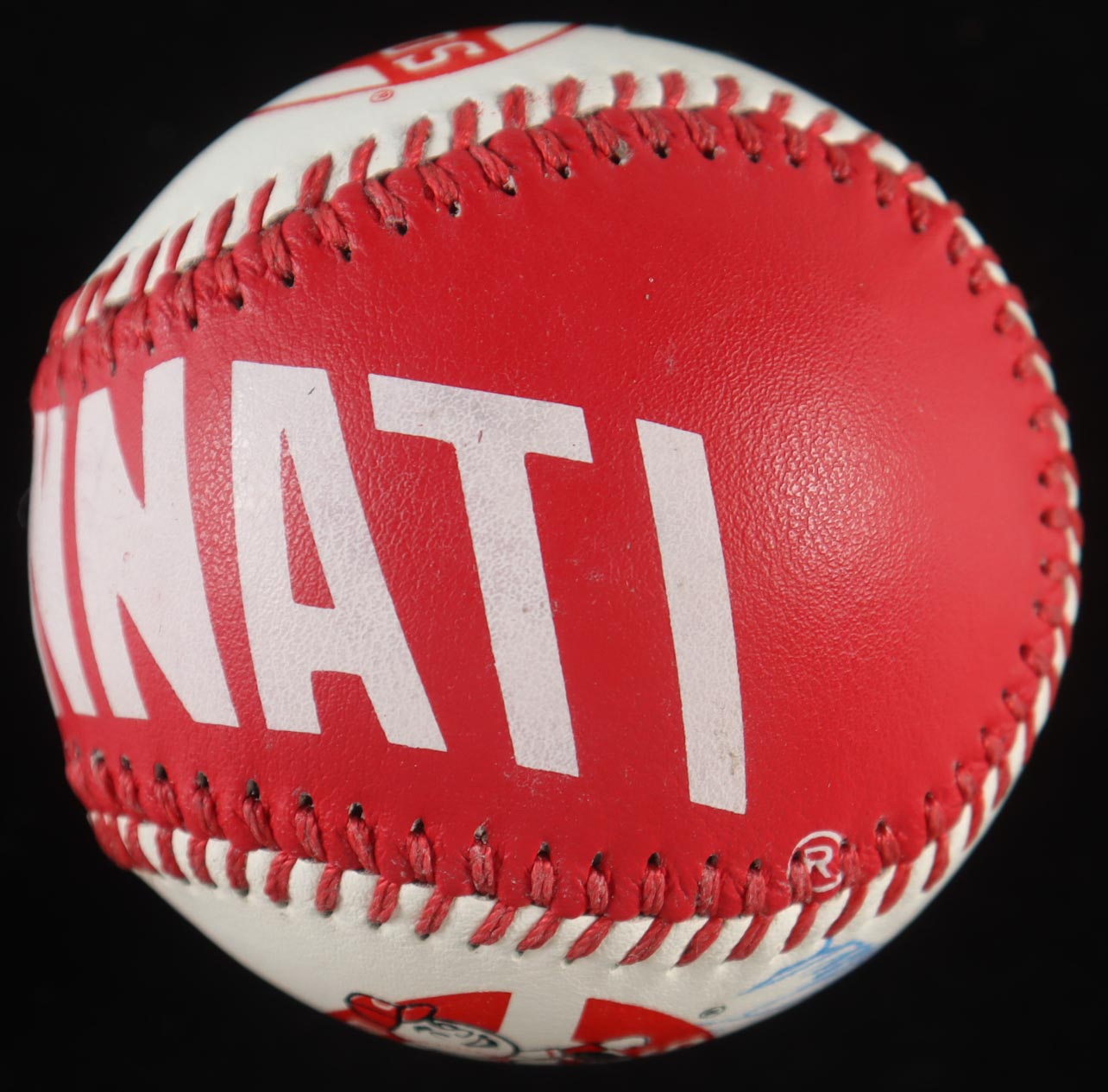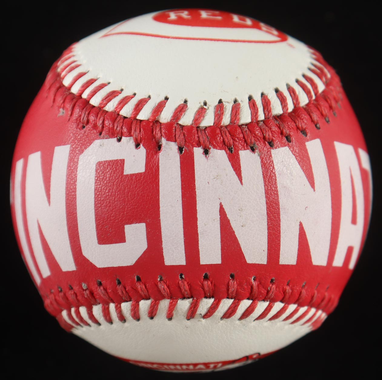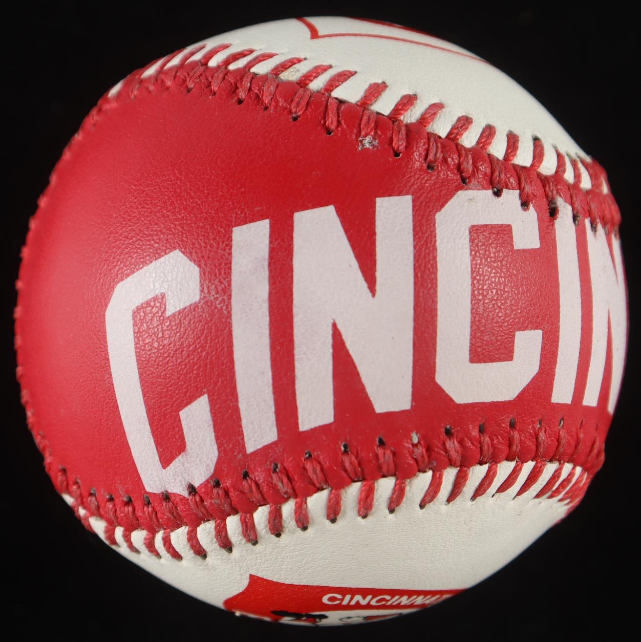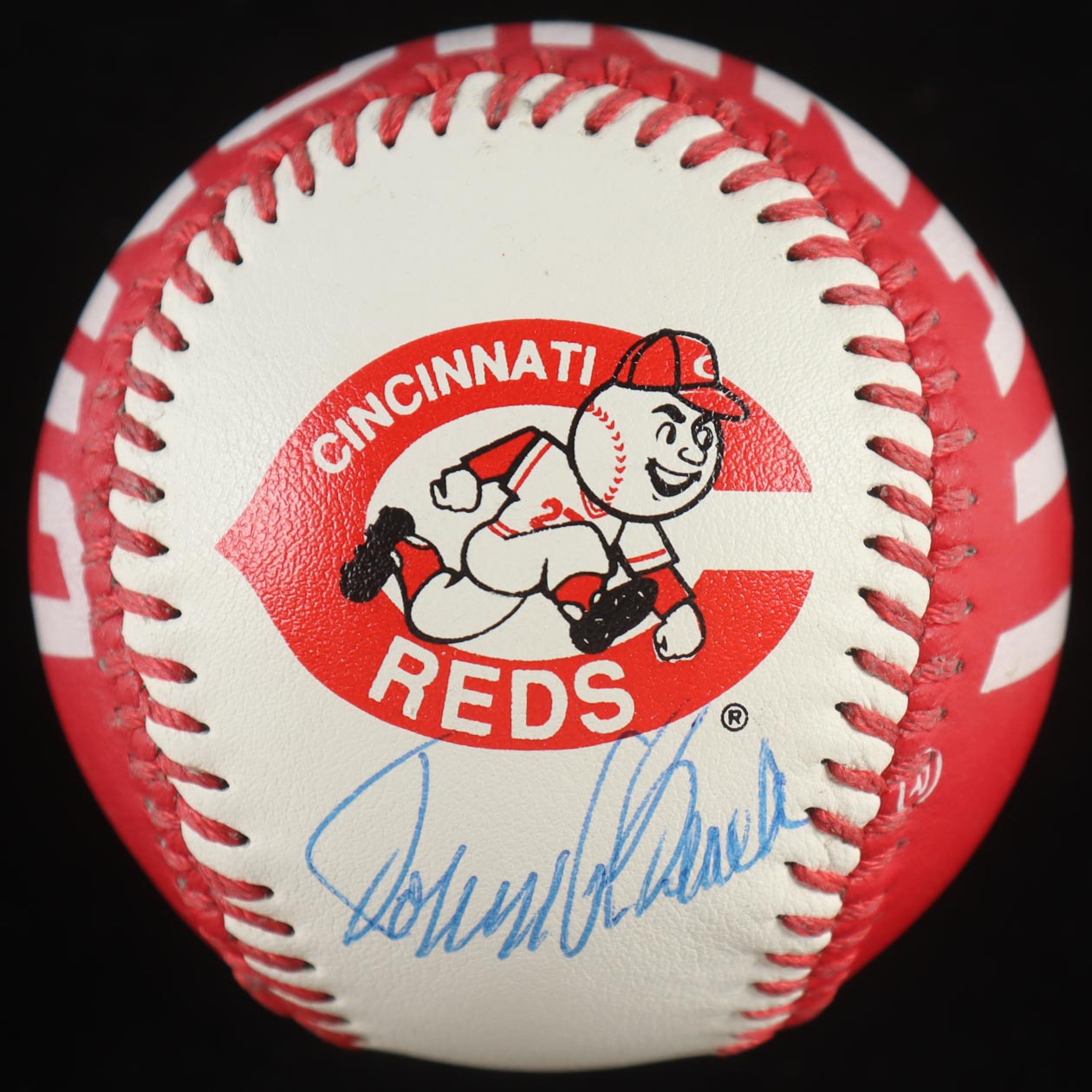 Cincinnati Reds Spinneybeck Logo Baseball. Hand-signed by Johnny Bench (Cincinnati Reds, HOF). Includes display case as shown. Please note, the baseball is naturally toned.
